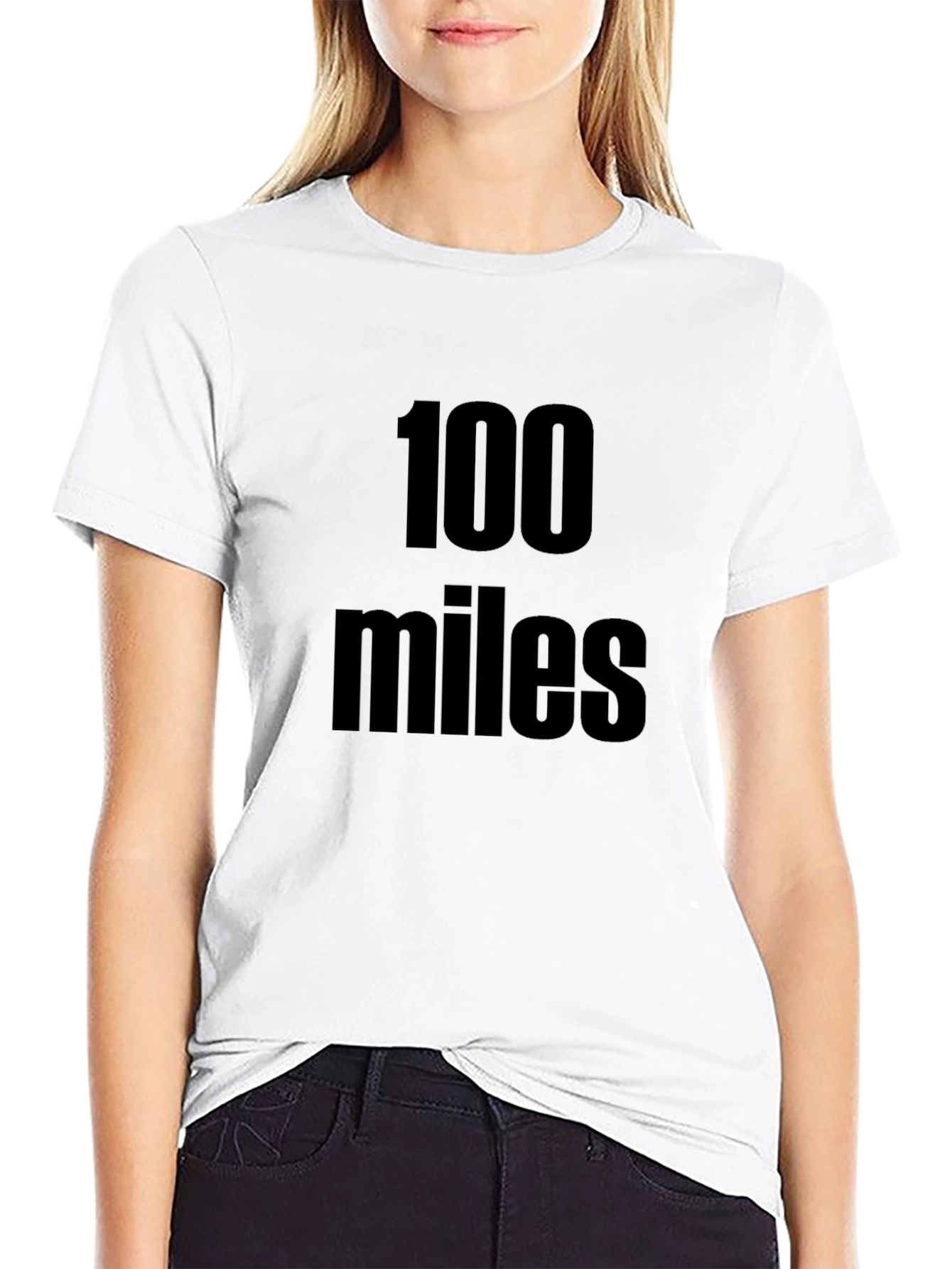 This classic black t-shirt features bold "100 miles" text, perfect for runners, cyclists, or anyone who loves a challenge. The simple design makes it versatile for casual wear or workouts. Made from a soft, comfortable fabric, this tee is ideal for everyday wear. Show off your achievements or inspire your next goal with this stylish and motivational t-shirt. The relaxed fit ensures comfort, making it a go-to choice for any activity. Whether you're hitting the trails or relaxing at home, this tee is a comfortable and cool choice. Upgrade your wardrobe with this unique statement piece!