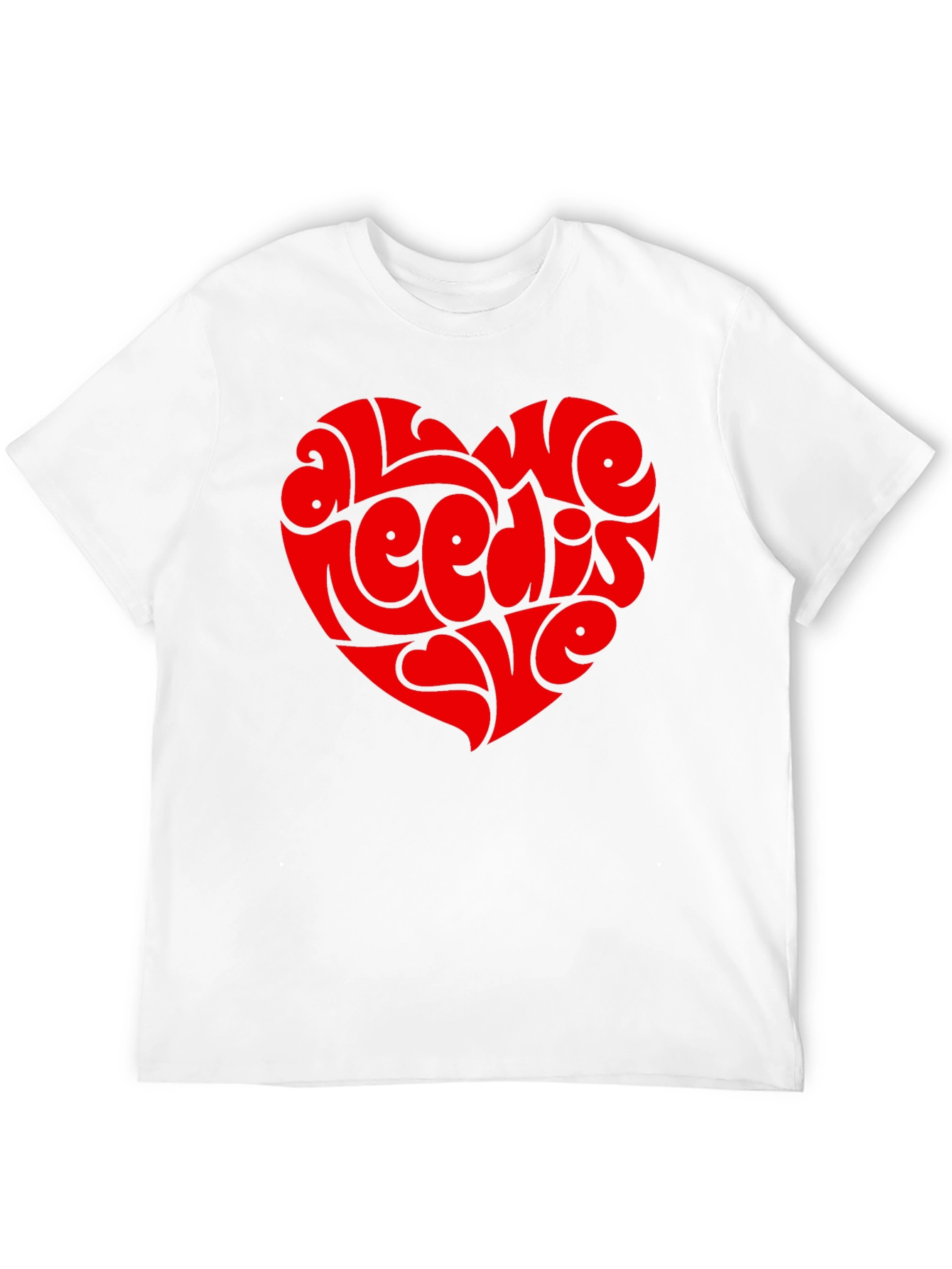 Show your love with this eye-catching black t-shirt featuring a bold, red "All You Need Is Love" graphic. The design is cleverly arranged in a heart shape, making it perfect for expressing your positive vibes and spreading joy. Made from comfortable, breathable fabric, this tee is ideal for casual wear, concerts, or making a statement wherever you go. Pair it with jeans, shorts, or a skirt for a versatile and stylish look. Let your love shine with this must-have graphic tee!