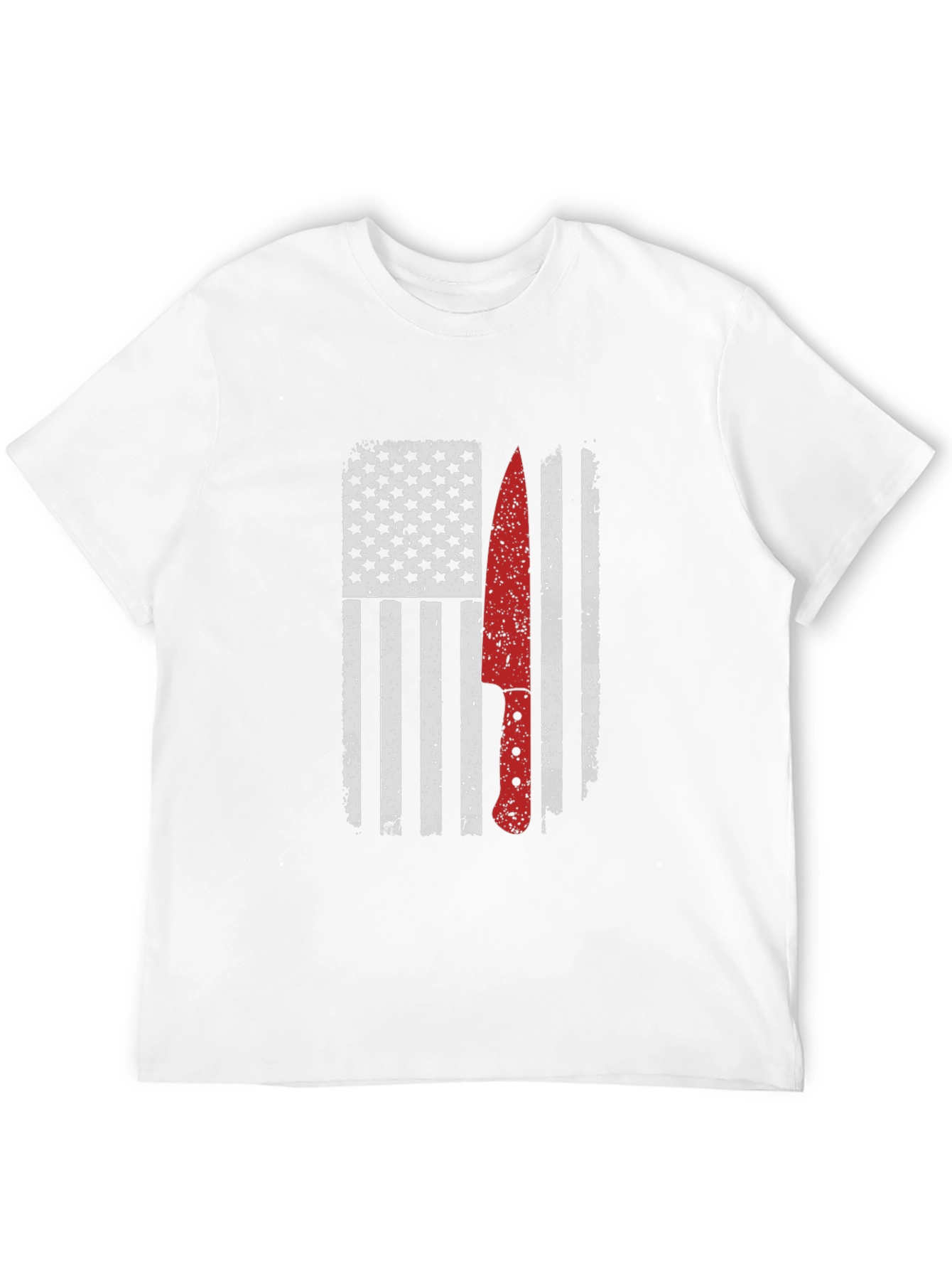 Show off your love for cooking and country with this striking graphic tee. The shirt features a distressed American flag design with a bold, red chef knife overlay. The design is printed on a soft, comfortable black cotton blend. The graphic print showcases an American flag with a knife. Perfect for barbecues, culinary events, or everyday wear, this tee is sure to make a statement. Get yours today and celebrate your passion for food and freedom!