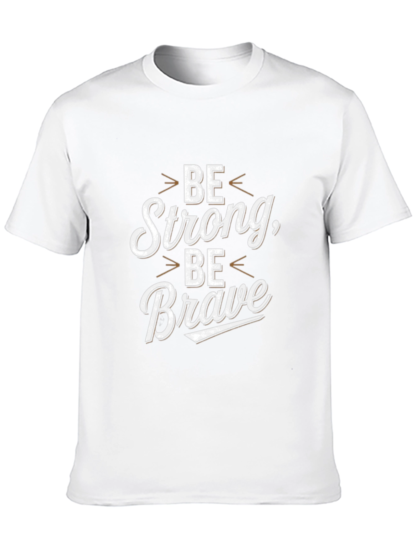Embrace inspiration with this classic black t-shirt featuring a motivational "Be Strong, Be Brave" graphic. The design is printed in a crisp, clean white font with stylish brown arrow accents. Made from a soft, comfortable fabric, this tee offers a relaxed fit that's perfect for everyday wear. Whether you're hitting the gym, running errands, or simply lounging at home, this t-shirt will keep you comfortable and motivated. Showcase your positive attitude with this eye-catching and empowering design. A great addition to any casual wardrobe, this tee is sure to inspire both you and those around you.