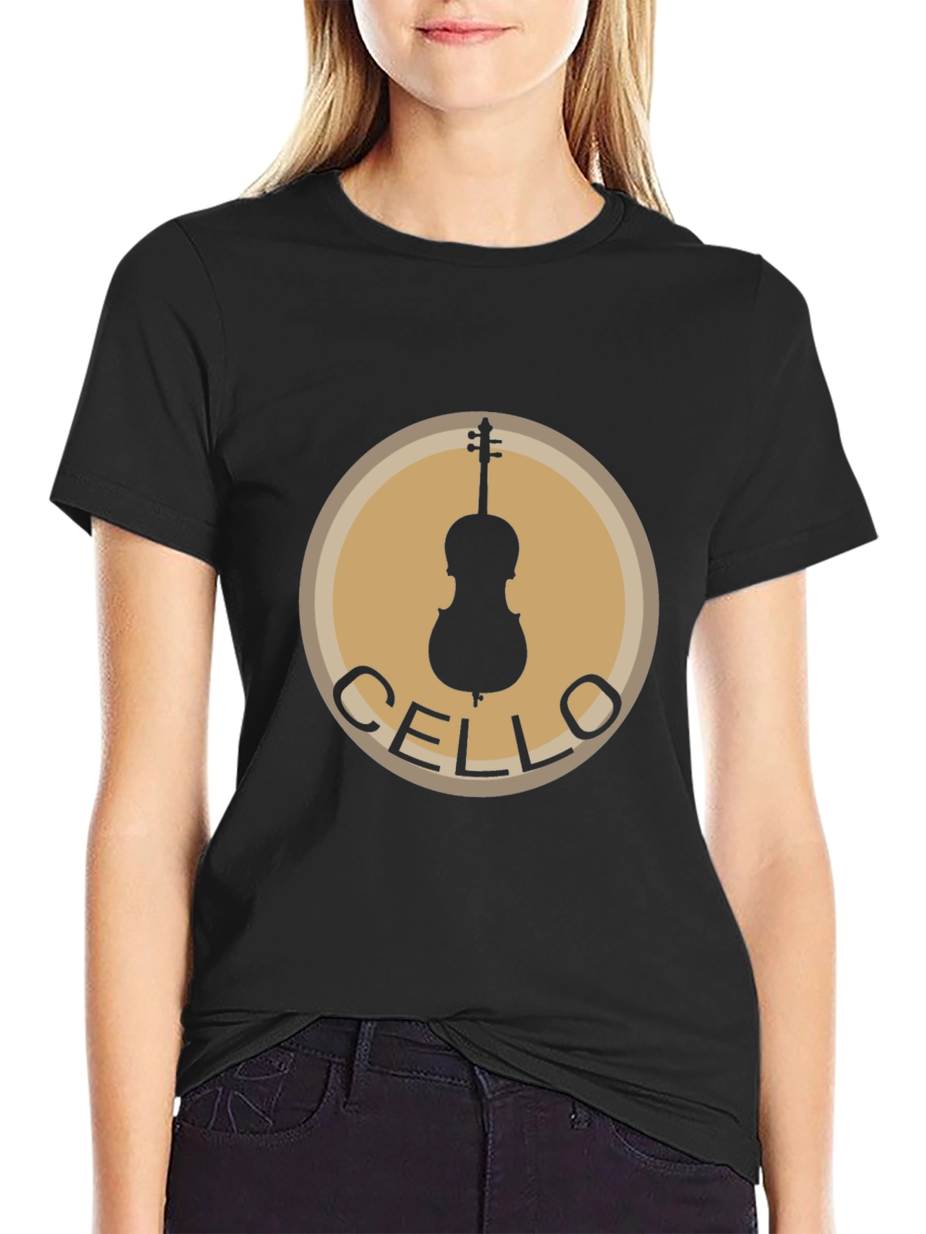 Show off your love for classical music with this stylish black t-shirt. This unique tee features a silhouette of a cello set against a tan-colored circle with the word 'CELLO' printed in bold letters. The design is simple yet eye-catching, perfect for musicians, music lovers, or anyone who appreciates a good design. Made from comfortable material, this shirt is ideal for casual wear, music class, or even a concert. A great gift for the cello player in your life. Add a touch of musical charm to your wardrobe today!