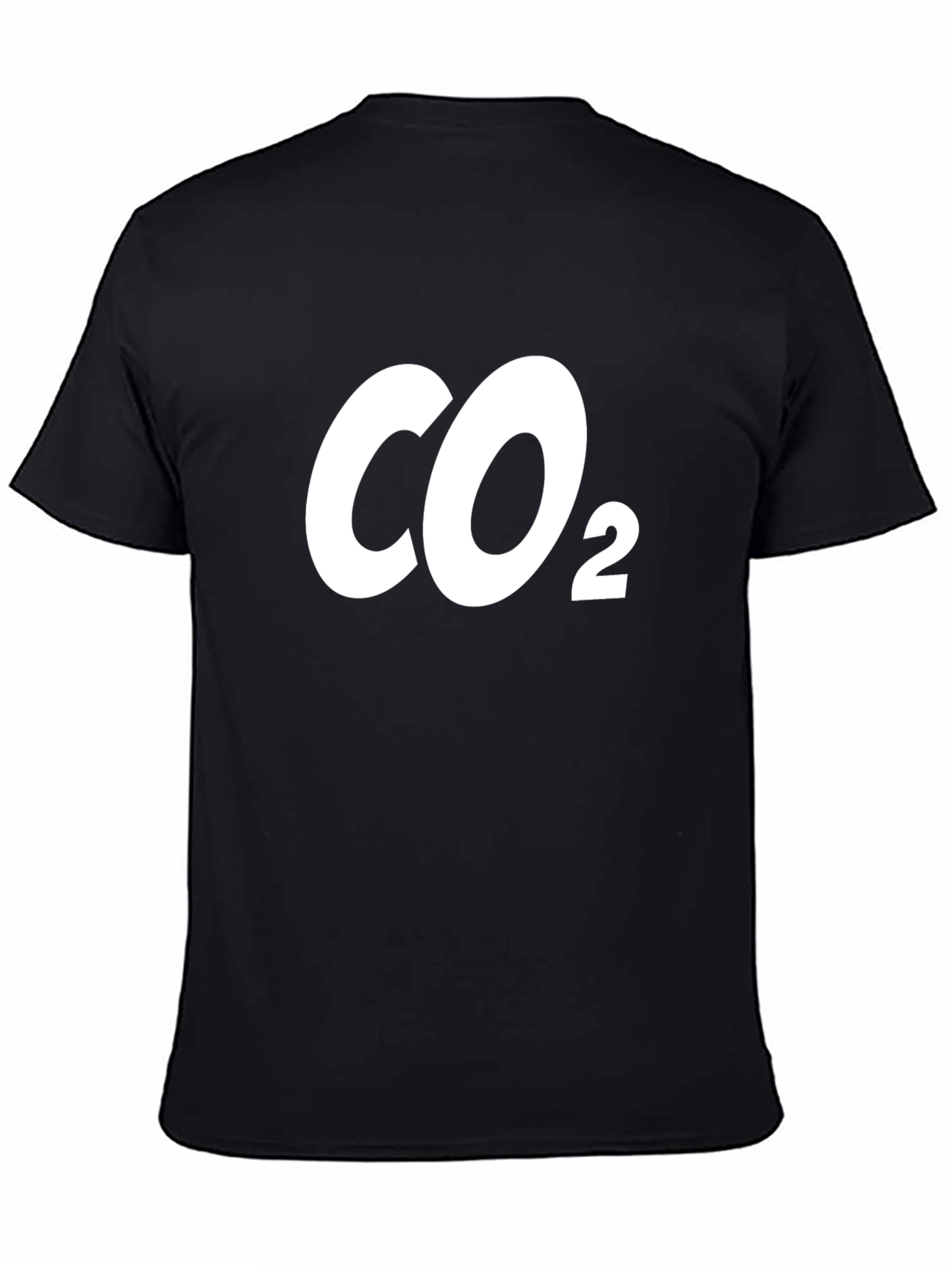 This black t-shirt features a bold, white "CO2" graphic design prominently displayed on the front. Made from what appears to be a soft and comfortable cotton blend, this tee offers a classic fit suitable for everyday wear. The short sleeves and crew neck provide a relaxed feel, making it ideal for casual outings or lounging at home. The clean design makes it a versatile piece that can be paired with jeans, shorts, or even dressed up with a jacket. Show off your interest in science or make a statement with this eye-catching graphic tee.