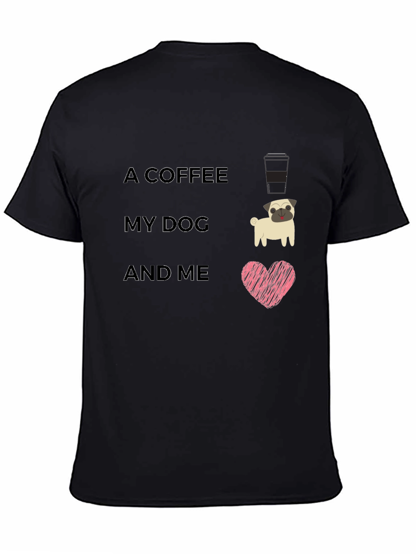 Show off your love for coffee and your furry friend with this stylish black t-shirt. Featuring a unique graphic design with a coffee cup, adorable dog illustration, and a heart, this shirt is perfect for casual wear. The shirt appears to be made from a soft, comfortable fabric. The short sleeves and relaxed fit make it ideal for everyday activities, whether you're grabbing a coffee, walking your dog, or simply relaxing at home. Express your passions with this fun and fashionable tee!