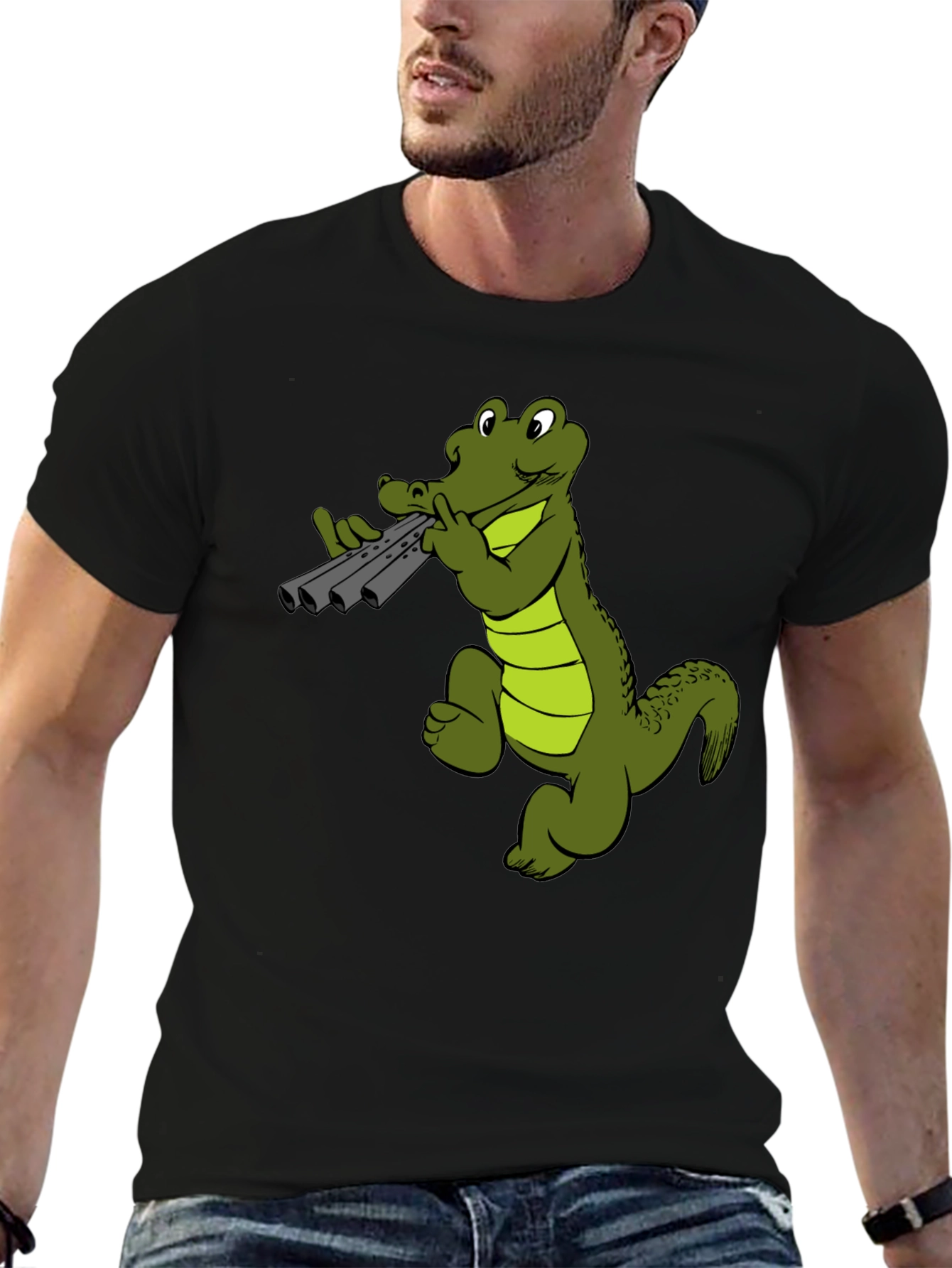 Cool Alligator Panpipes Graphic Tee - Black Cotton
