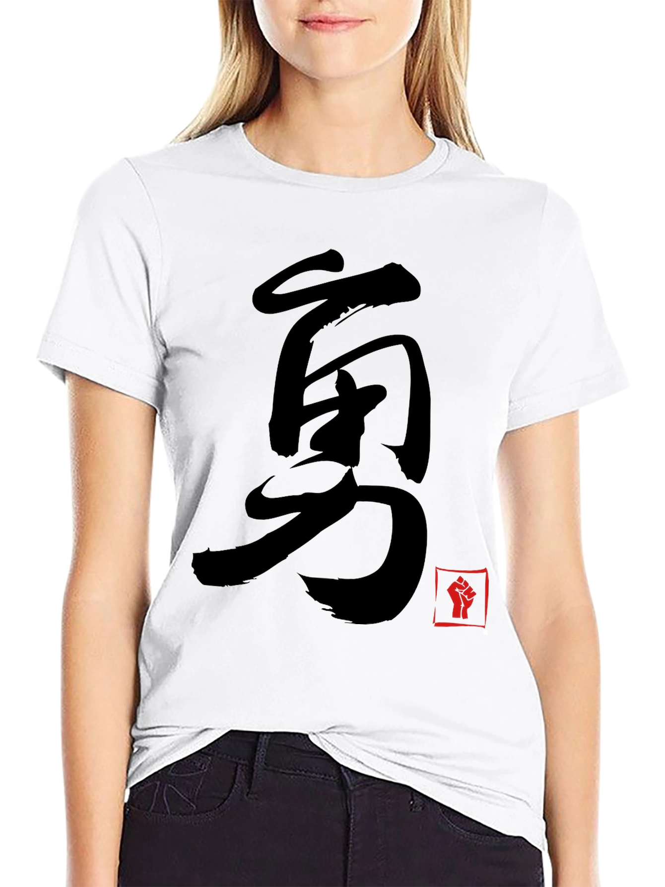 Embrace the spirit of bravery with this striking black t-shirt. Featuring a bold, black kanji character prominently displayed on the front, this tee embodies strength and resilience. A unique red graphic of a clenched fist in a square adds a pop of color and emphasizes the message of empowerment. Made from a soft and comfortable fabric, this t-shirt is perfect for everyday wear. Show off your inner warrior and make a statement with this stylish and meaningful design. Ideal for casual outings, workouts, or simply expressing your individuality.
