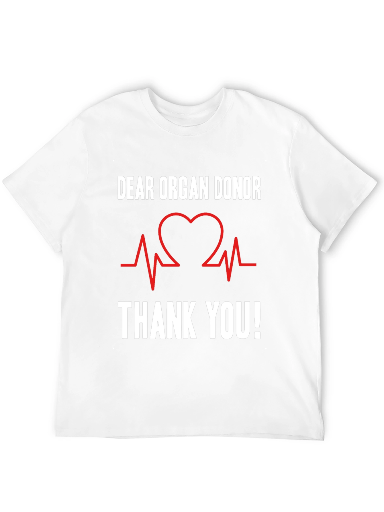 Show your appreciation with this meaningful 'Dear Organ Donor' graphic t-shirt. Made from comfortable, breathable fabric, this black tee features a striking red heart-shaped EKG design, accompanied by the words 'Dear Organ Donor' and 'Thank You!' in bold white text. A powerful way to promote organ donation awareness and express gratitude. Perfect for everyday wear, medical professionals, or anyone who supports this life-saving cause. A conversation starter and a statement of compassion. This t-shirt is a thoughtful and stylish way to make a difference.