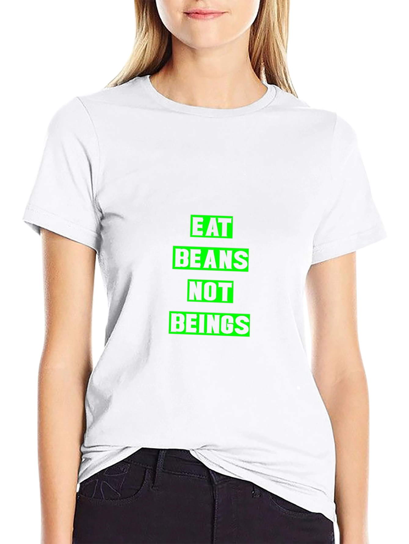 Make a statement with this unique black graphic t-shirt. Featuring a bold "EAT BEANS NOT BEINGS" design in striking green lettering, this tee is sure to turn heads and spark conversations. Crafted from a soft and comfortable fabric, it's perfect for everyday wear. The classic crew neck and short sleeve design ensure a relaxed and versatile fit. Ideal for casual outings, social gatherings, or expressing your unique sense of humor. This tee combines style and comfort effortlessly, making it a must-have addition to your wardrobe. Express your love for beans and make a statement with this bold tee!