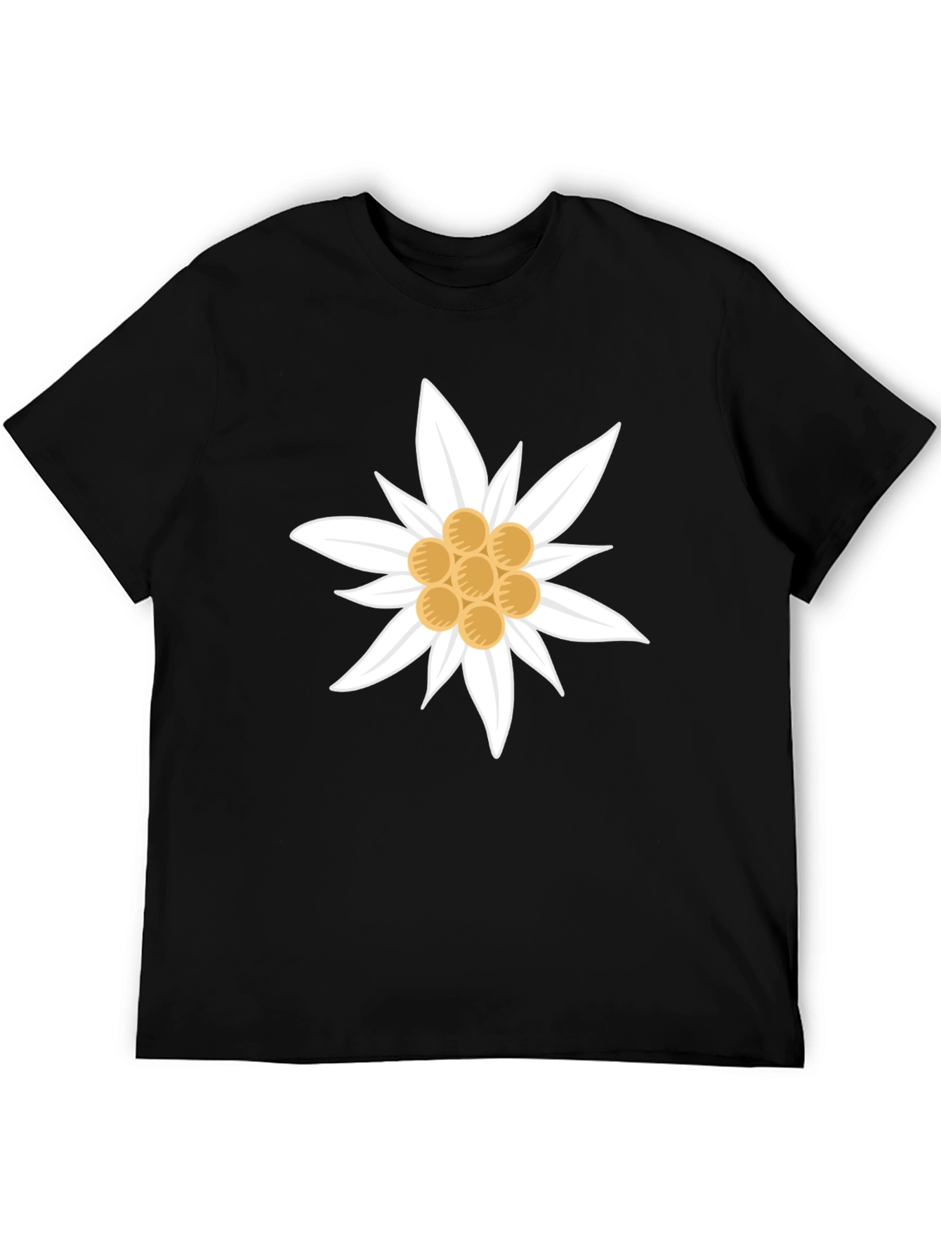 Edelweiss Flower Graphic T-Shirt - Black Cotton Tee