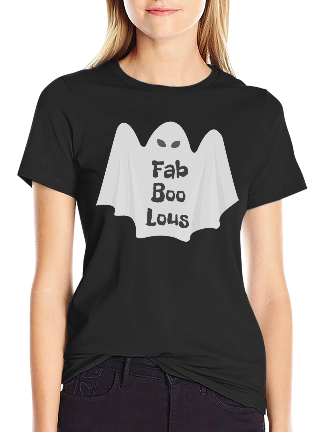 Get ready for Halloween with this fun and festive "Fab Boolous" T-shirt! This black t-shirt features a playful ghost graphic with the words "Fab Boolous" printed in a stylish font. The ghost design adds a touch of spooky charm, making it perfect for Halloween parties, trick-or-treating, or just showing off your holiday spirit. Made from comfortable, breathable fabric, this shirt is great for all-day wear. The classic crew neck and short sleeves offer a relaxed fit suitable for both men and women. Stand out this Halloween with this unique and eye-catching t-shirt that combines comfort and frightful fun.