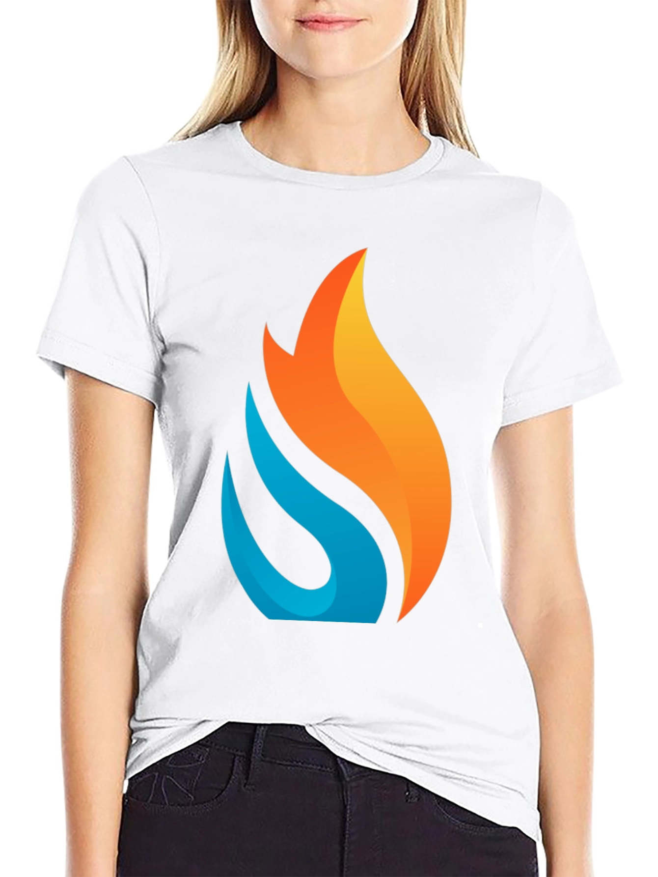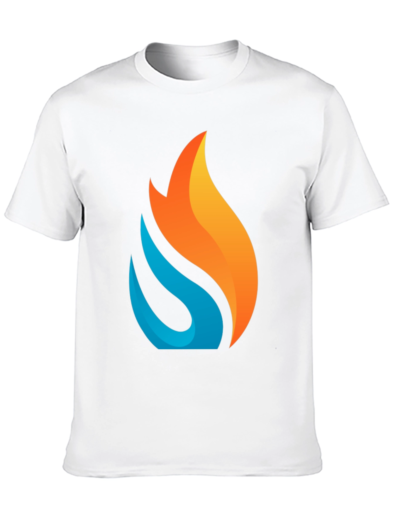 Elevate your casual style with this striking black t-shirt featuring a bold, stylized flame graphic. The design incorporates vibrant orange and blue hues, creating a visually dynamic and modern look. Made from a comfortable, breathable fabric, this tee is perfect for everyday wear. The classic crew neck and short sleeves offer a relaxed fit. Ideal for expressing your individual style, this t-shirt pairs effortlessly with jeans, shorts, or joggers. Whether you're heading out for a casual outing or simply relaxing at home, this flame graphic tee is a stylish choice. Make a statement with this eye-catching design that is sure to turn heads.