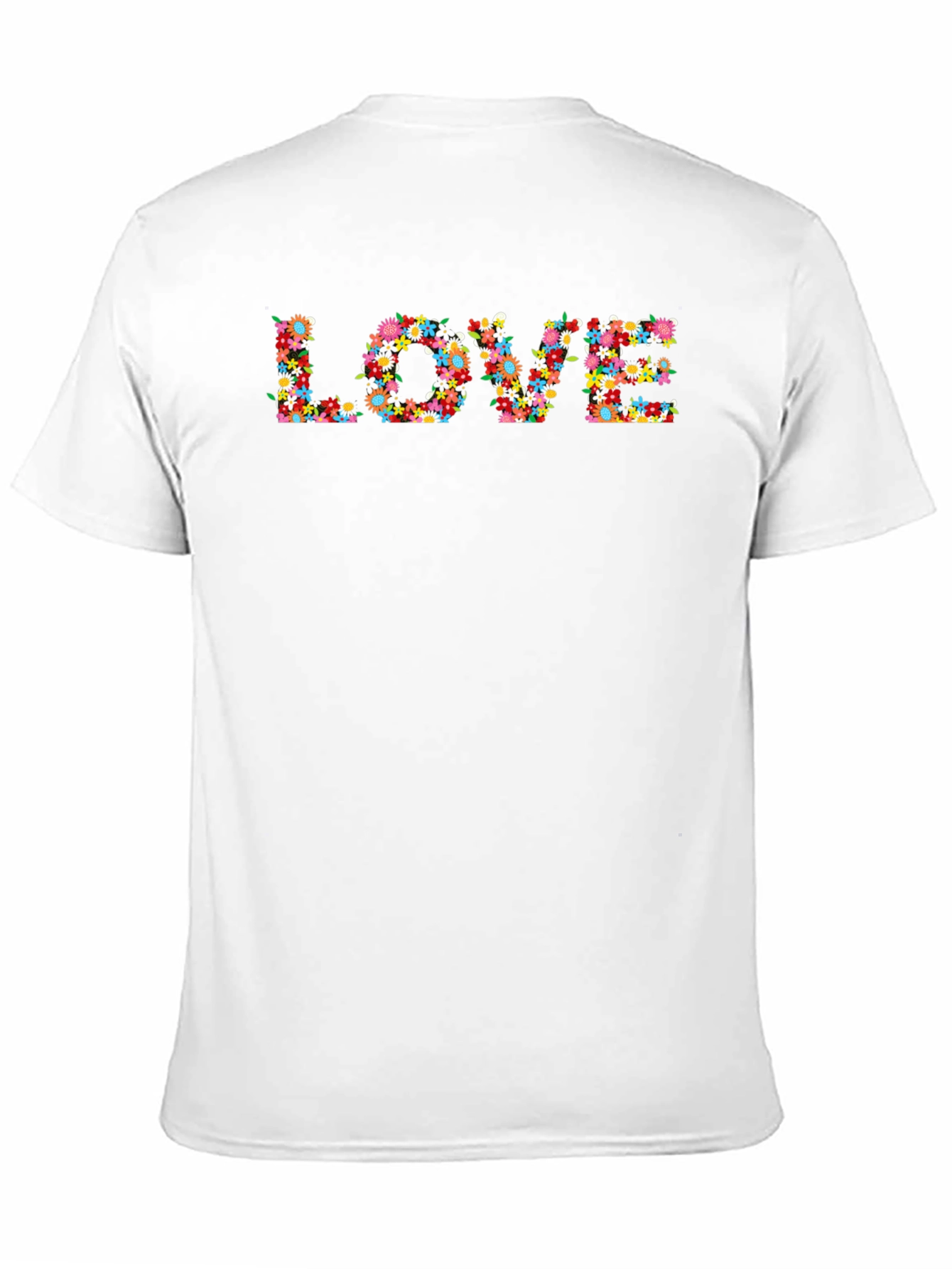 Express yourself with this eye-catching black t-shirt. Featuring the word 'LOVE' spelled out in a vibrant floral pattern, this tee is perfect for adding a touch of whimsy to your everyday style. The shirt appears to be made from a soft, comfortable fabric, suitable for casual wear. Its classic fit and black color make it versatile and easy to pair with jeans, shorts, or a skirt. Ideal for expressing your positive vibes, this tee is a must-have for anyone who loves floral designs and spreading good vibes. Wear it to concerts, social gatherings, or just lounging around the house.