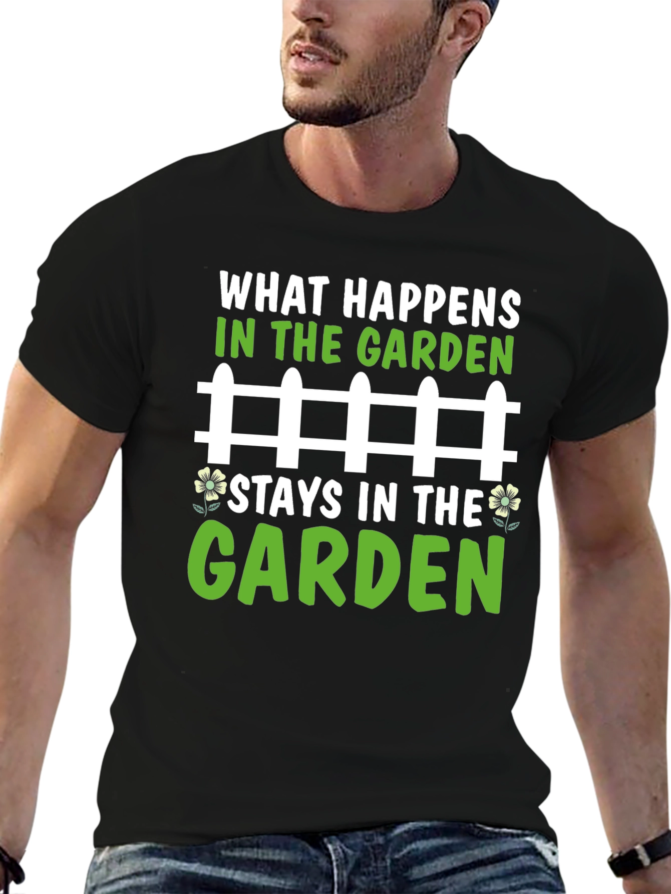 Embrace your love for gardening with this fun and quirky t-shirt! The shirt features the phrase "What Happens in the Garden Stays in the Garden" in a bold, eye-catching design. A whimsical white picket fence image is sandwiched between the words, with charming flower accents, adding a touch of playfulness. Made from comfortable, breathable fabric, this shirt is perfect for wearing while tending to your plants, relaxing in the backyard, or even running errands around town. Show off your green thumb and add a bit of humor to your wardrobe with this unique tee!