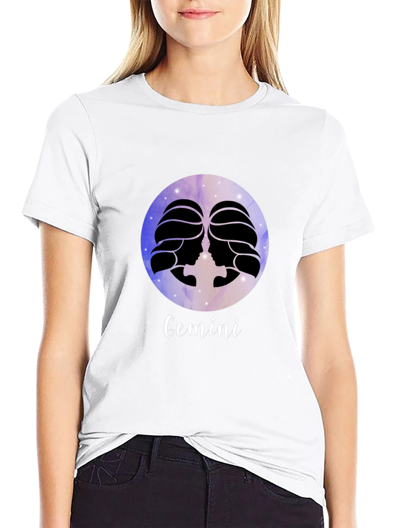 Show off your zodiac sign with this stylish black T-shirt! Featuring the Gemini symbol in a cool, galaxy-inspired circle, this tee is perfect for astrology lovers. The design includes two elegant silhouettes in profile, representing the twins of the Gemini sign, and the word "Gemini" displayed in a graceful script. Made from comfortable fabric, this T-shirt is great for casual wear or as a unique gift for the Gemini in your life. Add a touch of cosmic flair to your wardrobe with this eye-catching piece!