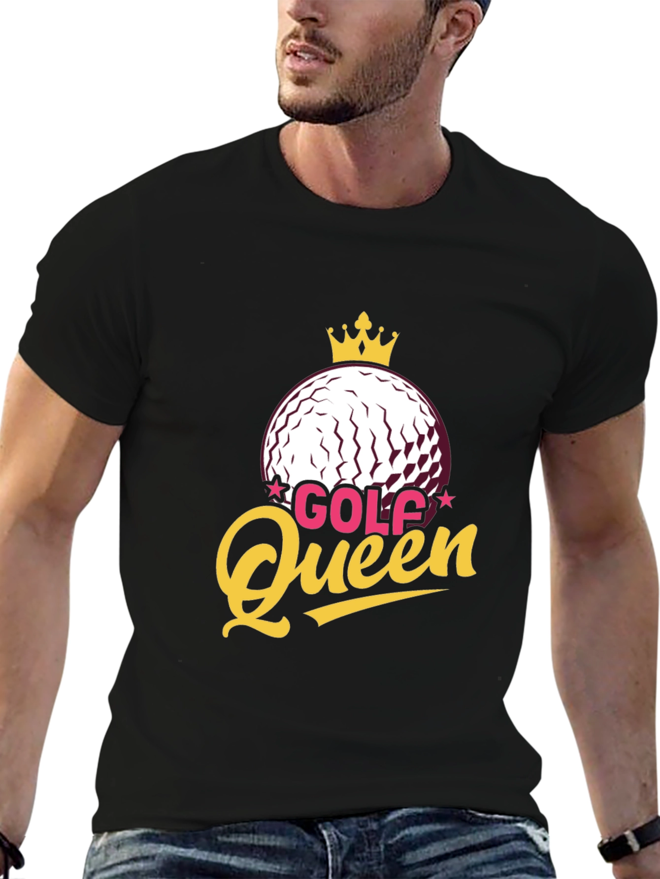 Show your love for golf with this stylish "Golf Queen" t-shirt! The shirt features a unique design with a golf ball adorned with a golden crown and the words "Golf Queen" in a vibrant, eye-catching font. Perfect for female golfers or anyone who enjoys a day on the green, this tee is sure to turn heads. Made from a soft, comfortable fabric, this tee is great for casual wear or a day on the golf course.