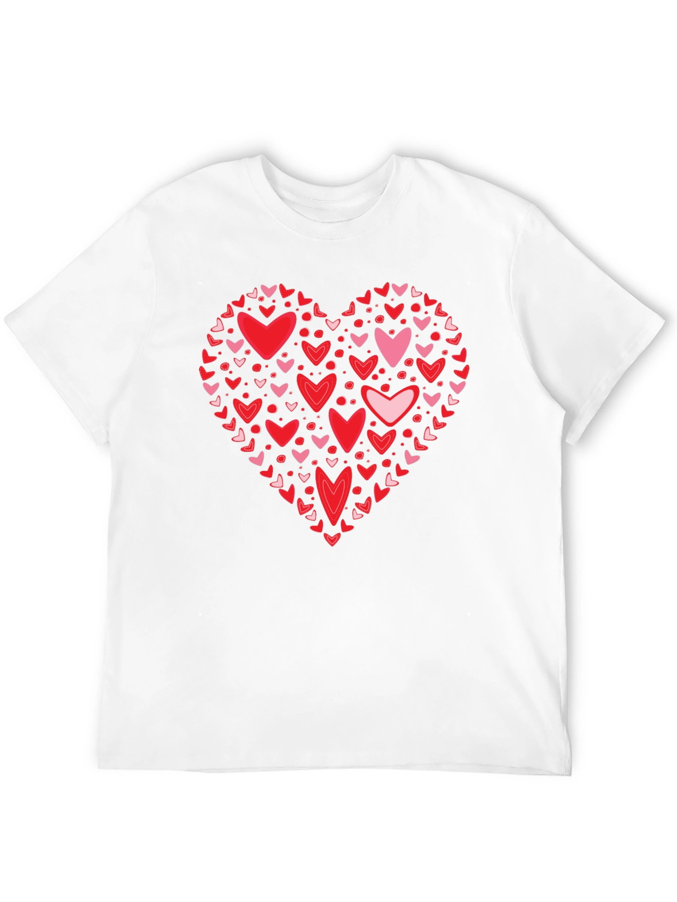 Show your love with this stylish and comfortable crew neck t-shirt. This black tee features a unique heart design composed of varying sizes of hearts in red and pink shades, creating a charming and romantic visual effect. Perfect for Valentine's Day, date nights, or casual wear, this shirt is sure to make a statement. The soft fabric and classic fit ensure all-day comfort, while the eye-catching design adds a touch of personality to any outfit. Wear it with jeans, shorts, or a skirt for a versatile and fashionable look.