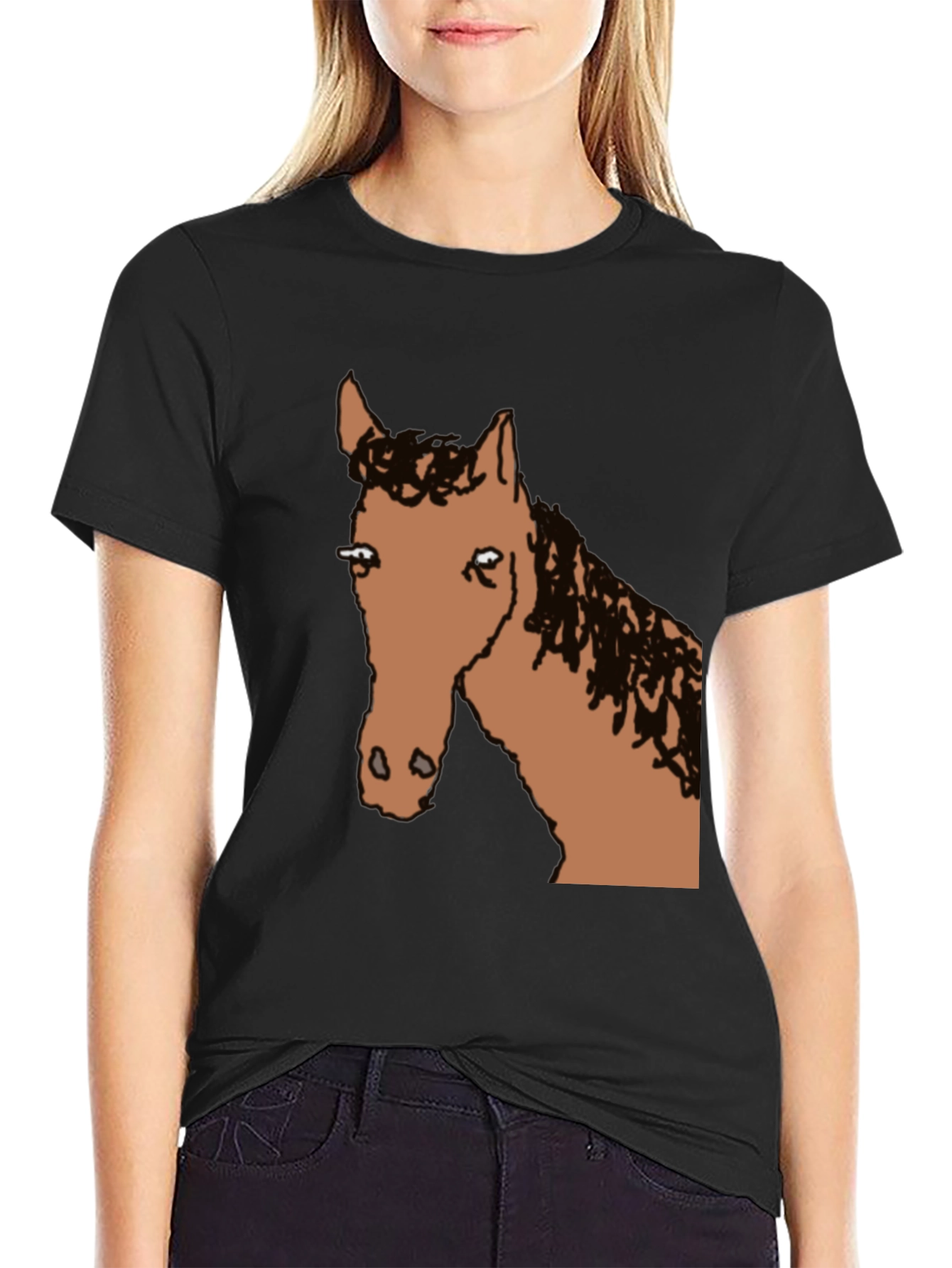 Horse Graphic Tee - Black Cotton Blend