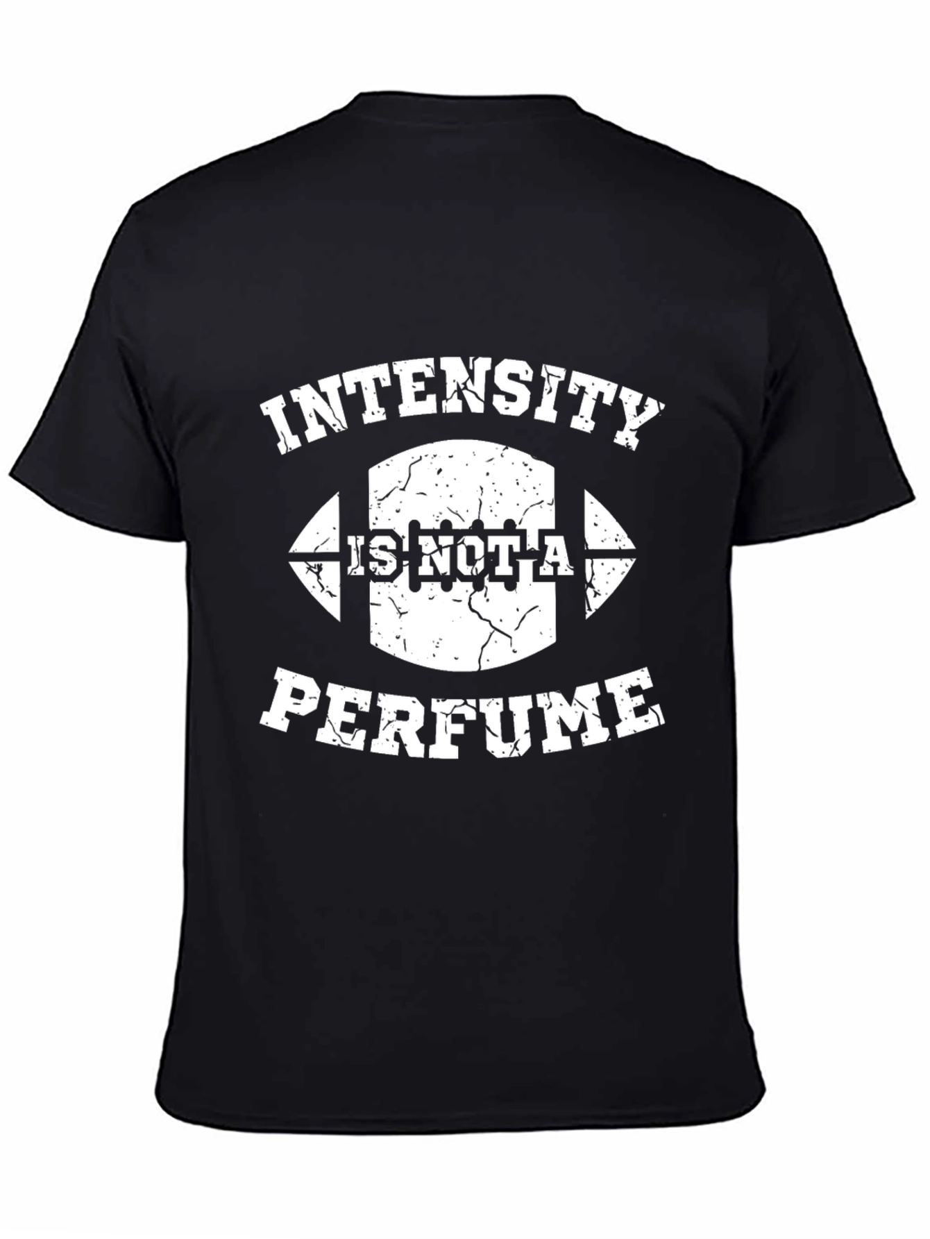 Showcase your unique style with this eye-catching graphic t-shirt. This black tee features a bold white print that reads 'Intensity Is Not A Perfume' with a football graphic. The distressed design lends a vintage feel, while the classic fit ensures all-day comfort. Made from soft and breathable fabric, this shirt is perfect for casual outings, sports events, or lounging at home. Make a statement with this standout tee and let your personality shine. Great for football fans with a sense of humor! Easily pairs with jeans, shorts, or your favorite athleisure wear.
