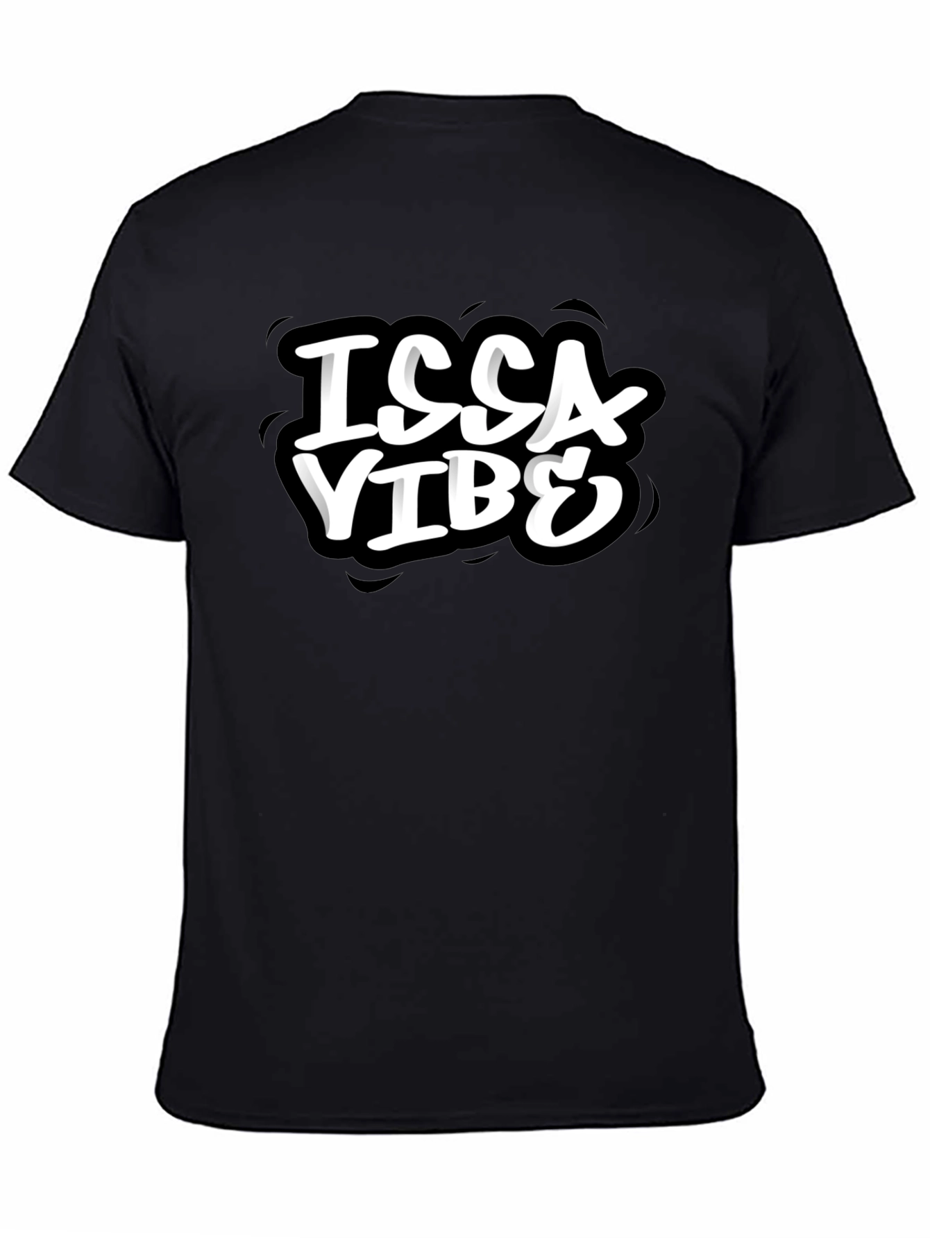 This black T-shirt features a bold, stylized "ISSA VIBE" graphic in white with a black shadow effect, making a strong statement. The classic crew neck and short sleeves offer a relaxed and comfortable fit. Made from what appears to be soft cotton or a cotton blend, this tee is perfect for casual wear, concerts, or hanging out with friends. Pair it with jeans, shorts, or joggers for an effortlessly cool look. Show off your good vibes with this eye-catching tee!