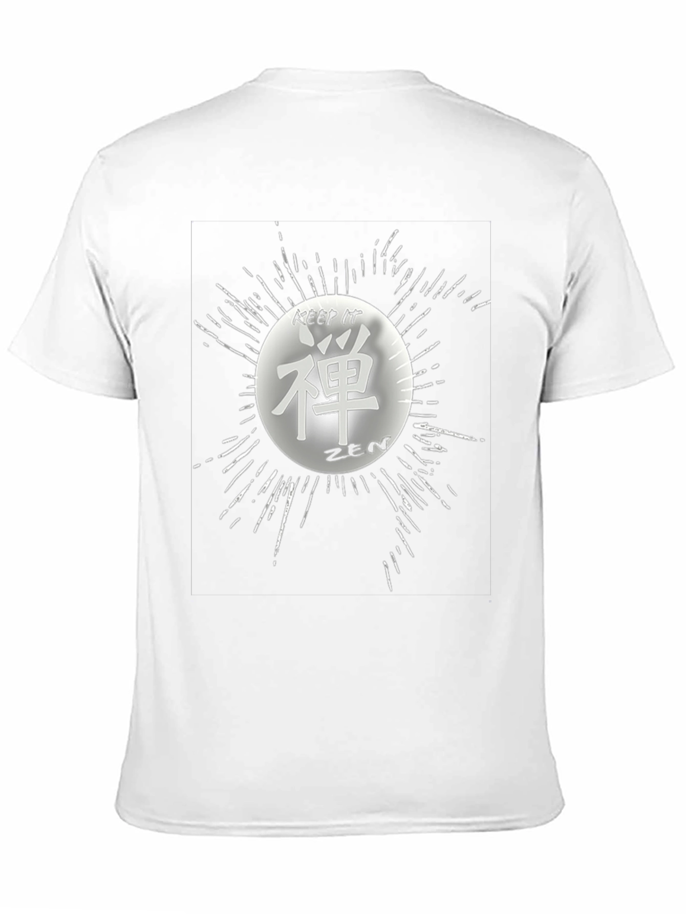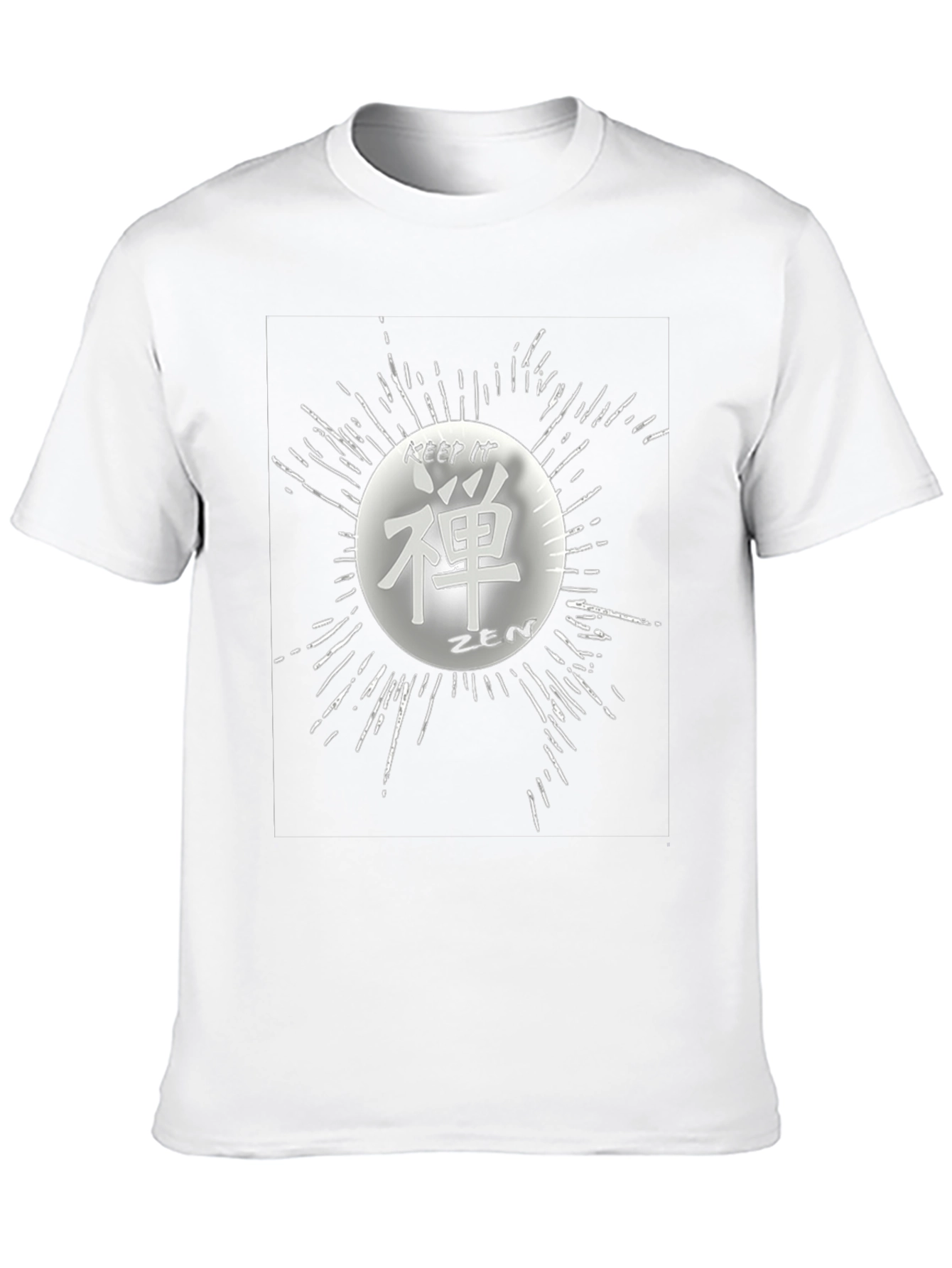 Embrace tranquility with this striking black t-shirt. The shirt features a unique design: a white, orb-like graphic with the word "Zen" creatively incorporated. The orb is surrounded by a burst of white lines, giving it a dynamic and eye-catching look. The short sleeves and classic fit make it a comfortable choice for everyday wear. Show off your style at yoga class, casual outings, or just relaxing at home. Made from comfortable material, this t-shirt combines spiritual inspiration with modern fashion.