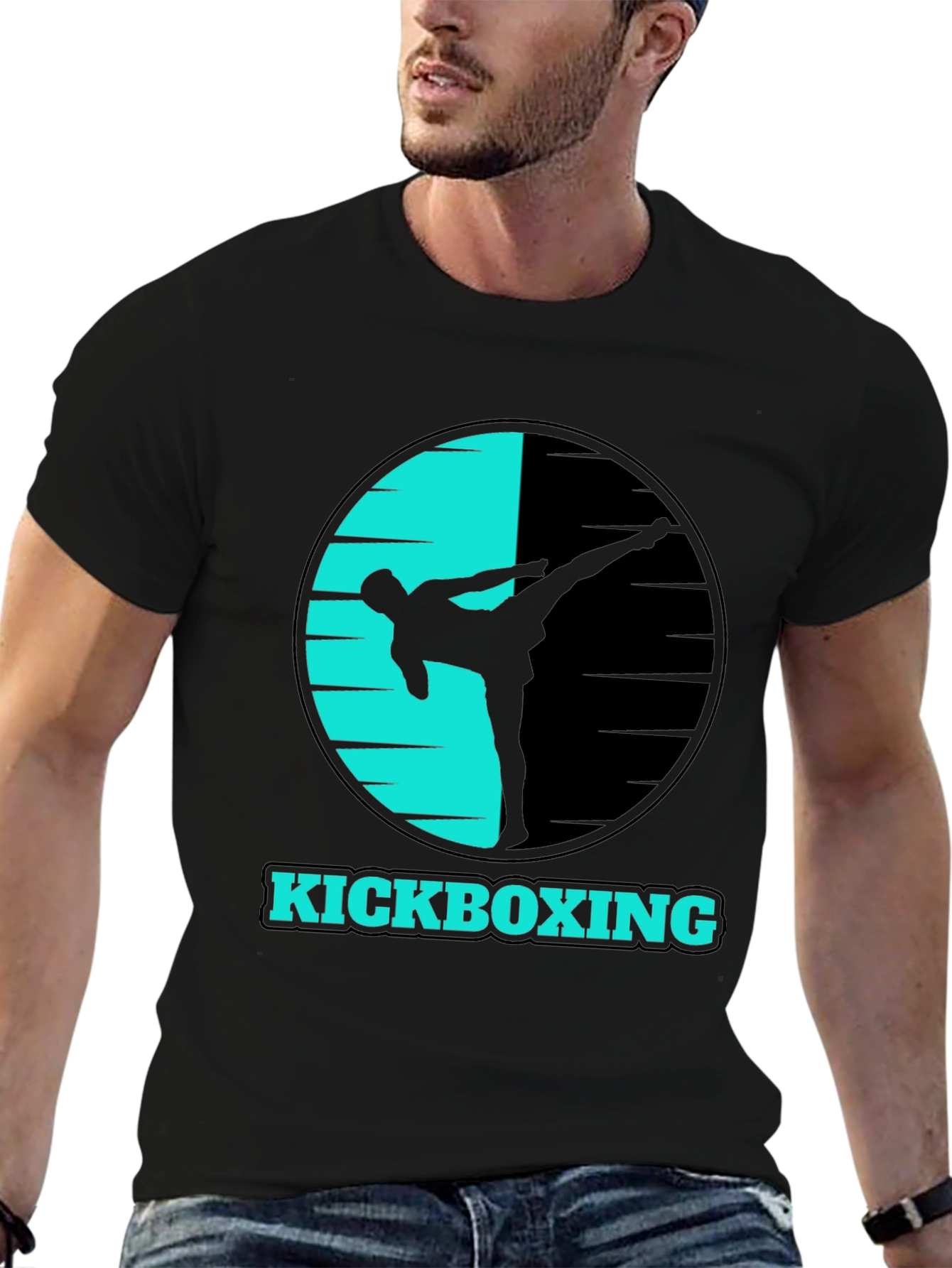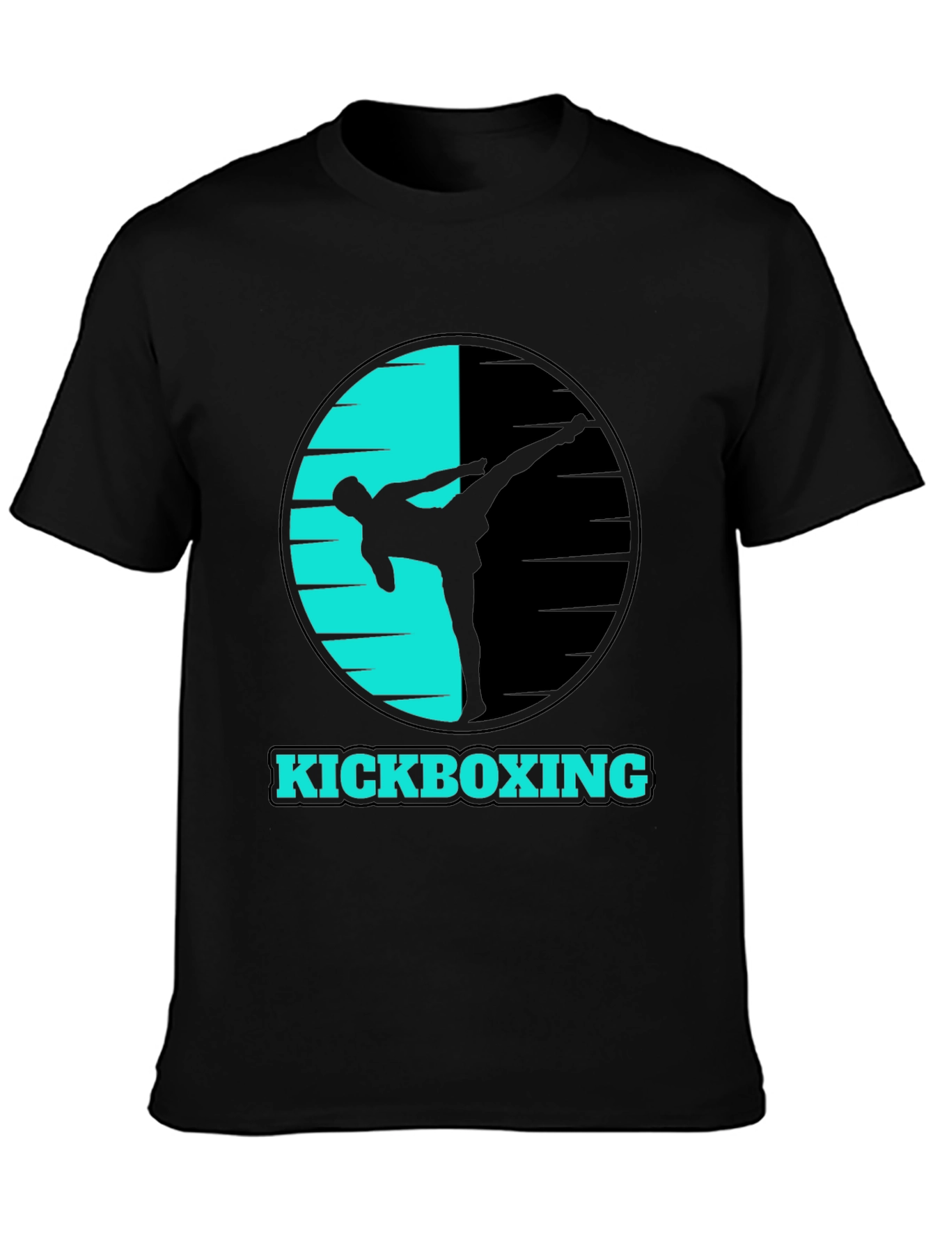 Show off your love for martial arts with this stylish black t-shirt. The shirt features a bold graphic design with a kickboxing silhouette inside a contrasting circle. The word "KICKBOXING" is printed underneath the design. Made from comfortable, breathable fabric, this tee is perfect for workouts, casual outings, or simply lounging at home. It's a great way to express your passion for kickboxing and makes a unique gift for martial arts enthusiasts. This versatile tee pairs well with jeans, shorts, or workout gear. Get yours today and make a statement!