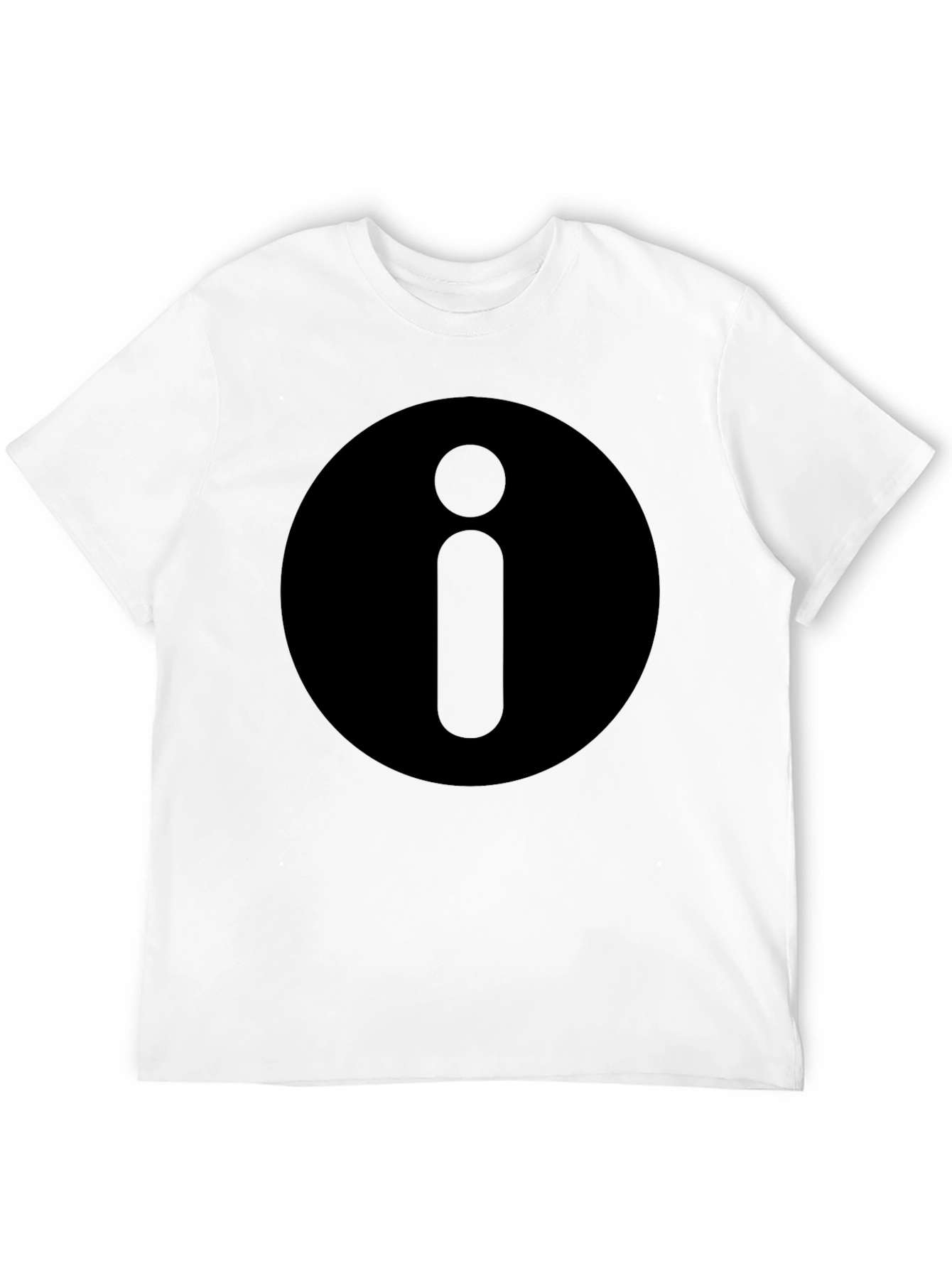 This sleek black t-shirt features a minimalist design with a bold information symbol at its center. The clean, circular emblem and classic fit offer a modern and understated style. Crafted from a soft, breathable fabric, this tee provides all-day comfort. Ideal for casual wear or as a statement piece, this versatile t-shirt pairs effortlessly with jeans, shorts, or layered under a jacket. Show off your unique style with this must-have addition to your wardrobe.
