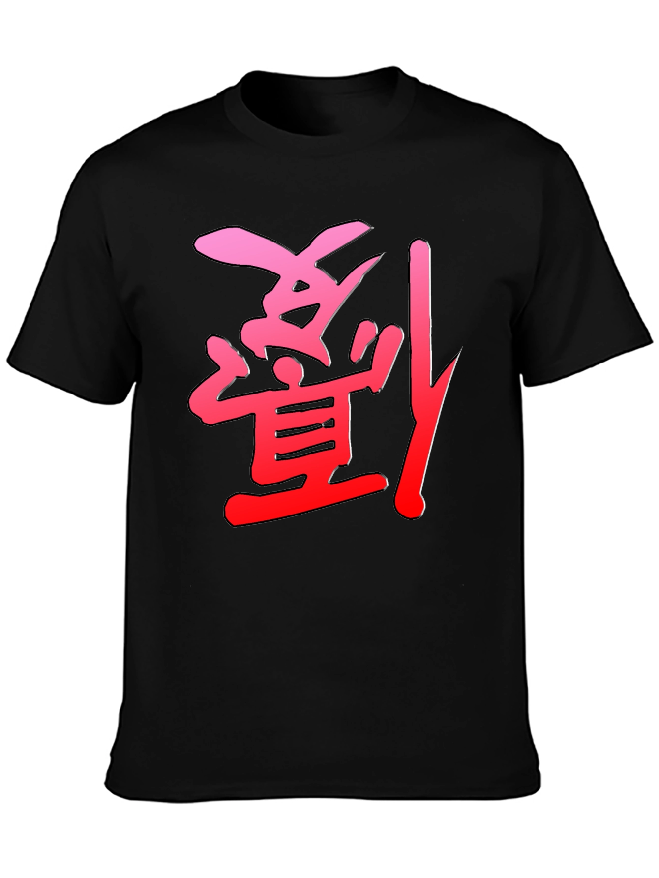 Show off your unique style with this modern black t-shirt. This stylish top features a bold, eye-catching Japanese Kanji graphic in vibrant pink and red. The design adds a touch of eastern inspiration to any casual look. Made from comfortable fabric, this tee is perfect for everyday wear. Dress it up with jeans and sneakers for a trendy casual look or wear it to the gym. This tee is a great way to add visual interest to your wardrobe and express your individuality.