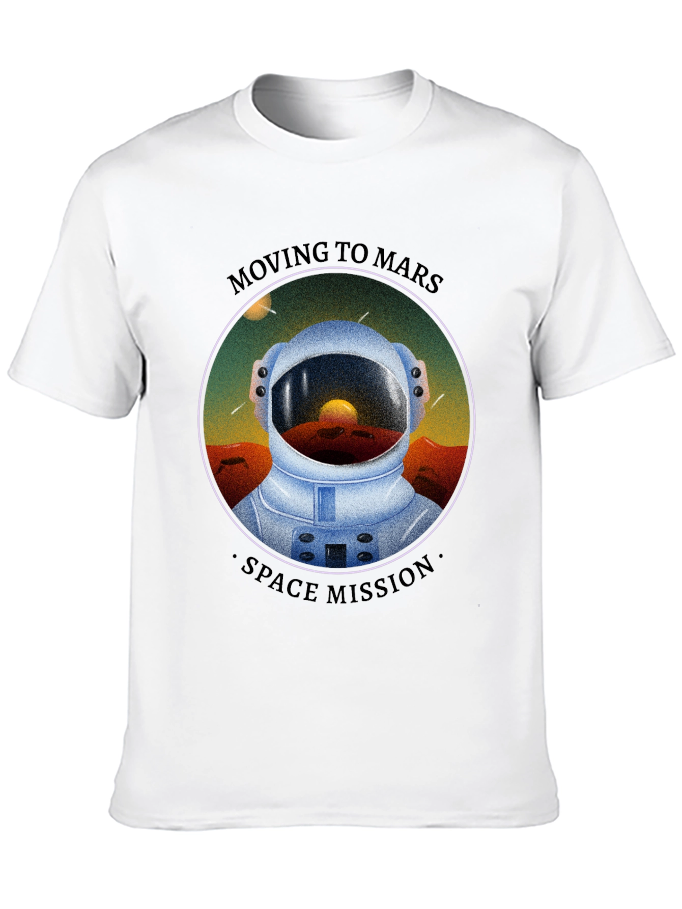 Explore the cosmos with this unique "Moving to Mars" graphic t-shirt! Featuring a striking design of an astronaut helmet set against a Martian landscape, complete with planets and cosmic effects, this shirt is perfect for space enthusiasts. The high-quality print is set within a circular frame with the text "Moving To Mars - Space Mission." Made from a soft, breathable black fabric, this tee offers both comfort and style. Wear it casually with jeans or dress it up for a geek-chic look. Great for everyday wear, space-themed events, or as a gift for the aspiring astronaut in your life. Boldly go where no one has gone before with this must-have tee!