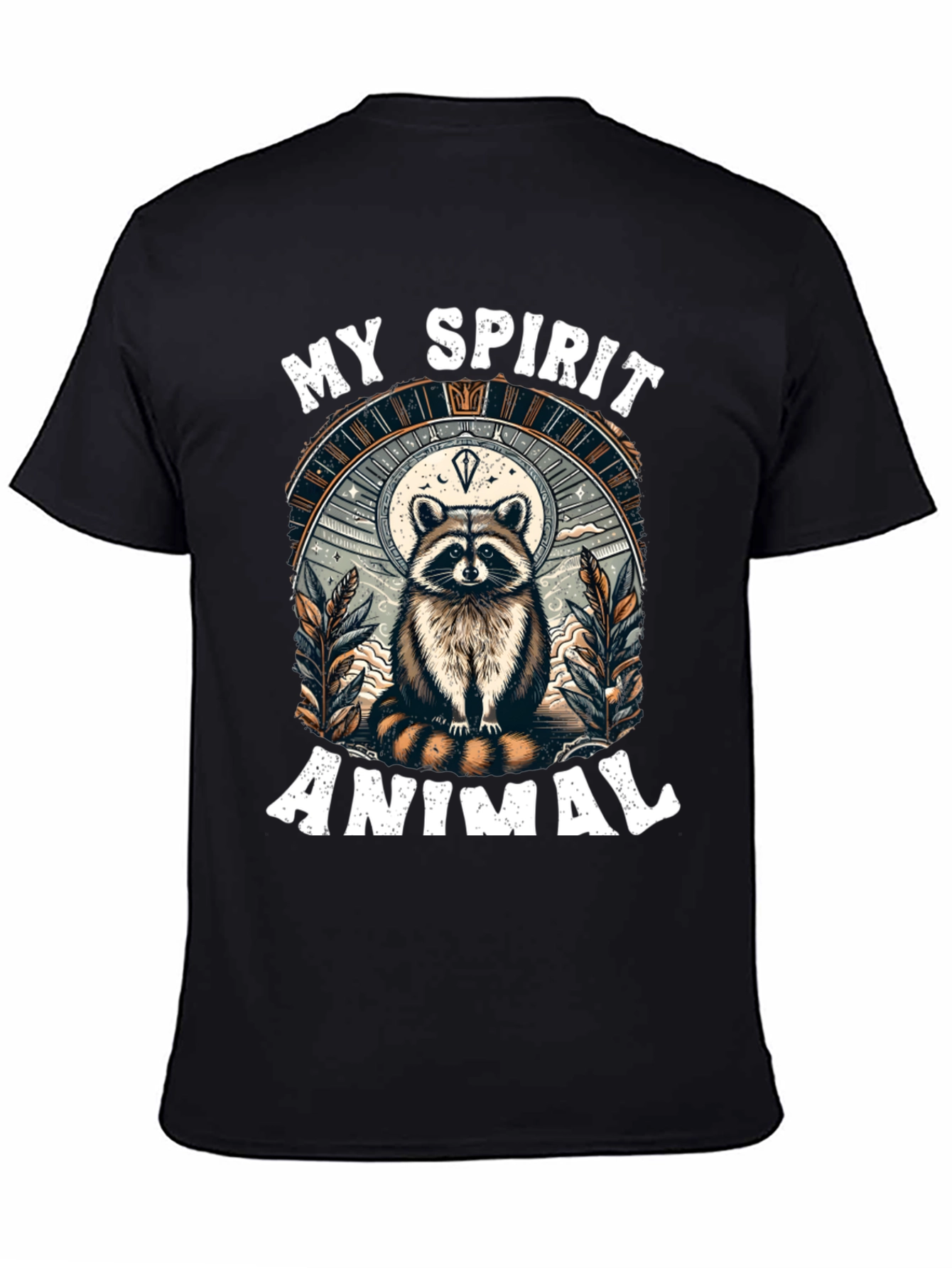 Show off your love for nature with this unique graphic tee. Featuring a beautifully detailed raccoon design with the phrase "My Spirit Animal," this shirt is perfect for those who feel a connection with these clever creatures. The design incorporates artistic elements, set against a solid black background. Made from soft, comfortable fabric, this tee is ideal for casual wear, outdoor adventures, or as a conversation starter at social gatherings. Express your wild side with this eye-catching and meaningful tee.