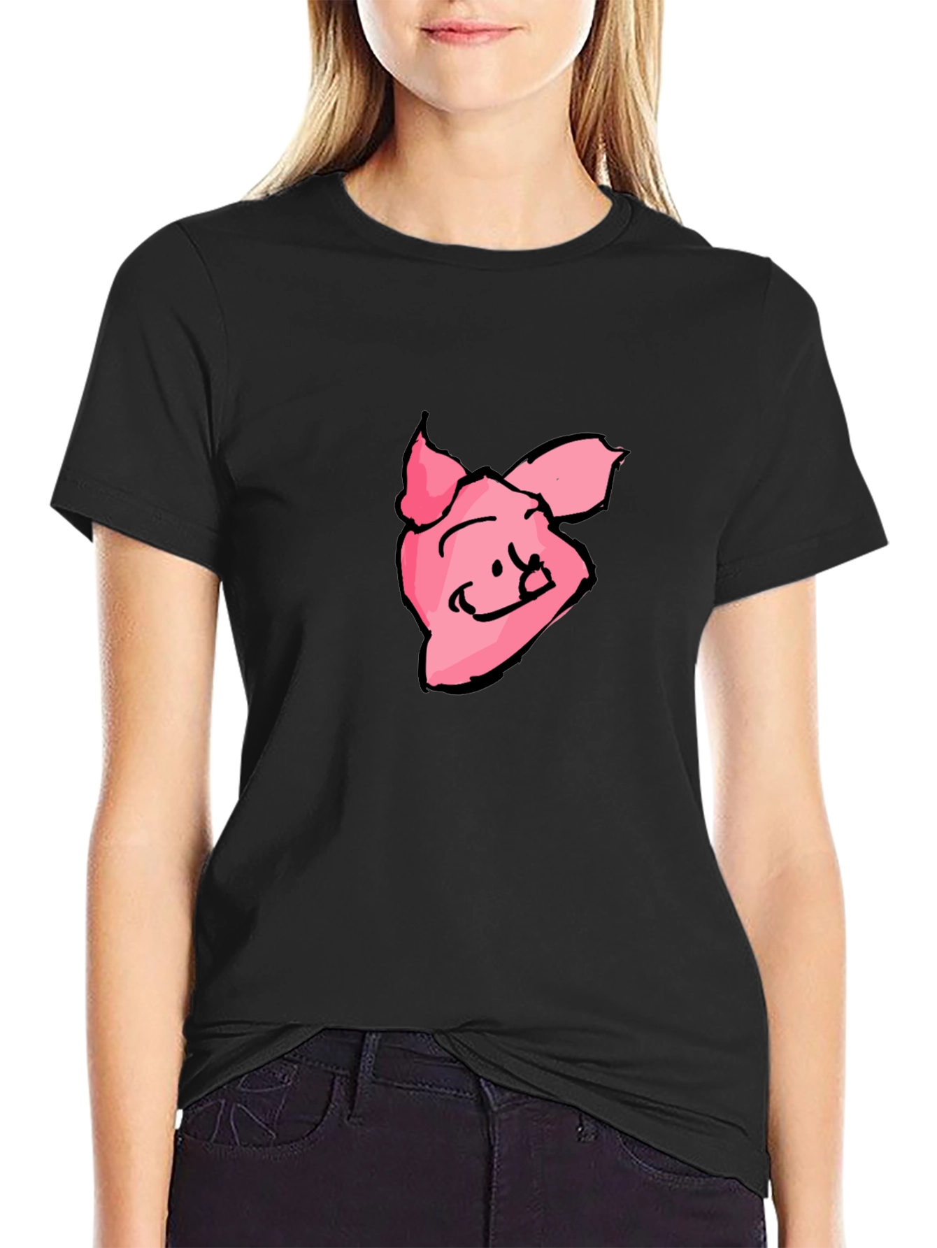 Show off your fun side with this unique black t-shirt! Featuring a playful, pink pig cartoon graphic, this tee is sure to be a conversation starter. Made from comfortable, breathable fabric, it's perfect for everyday wear. Dress it up or down - ideal for casual outings, lounging at home, or making a statement. This tee offers a relaxed fit that flatters all body types. Add a touch of whimsy to your wardrobe with this standout piece!