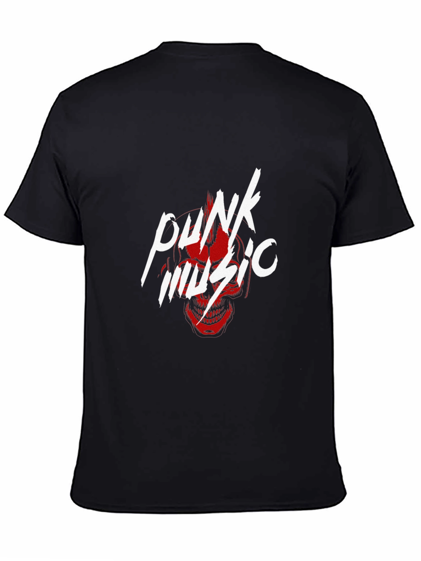 Show off your edgy style with this striking black cotton t-shirt. The tee features a bold graphic design that combines the words 'punk music' in a distorted, eye-catching font with an underlying skull design. Made from soft, breathable cotton, this t-shirt offers both comfort and durability. The classic crew neck and short sleeves provide a relaxed fit, perfect for everyday wear. Ideal for music lovers and those with a rebellious spirit, this tee is perfect for concerts, casual outings, or adding a touch of attitude to any outfit. Make a statement and express your individuality with this unique piece.