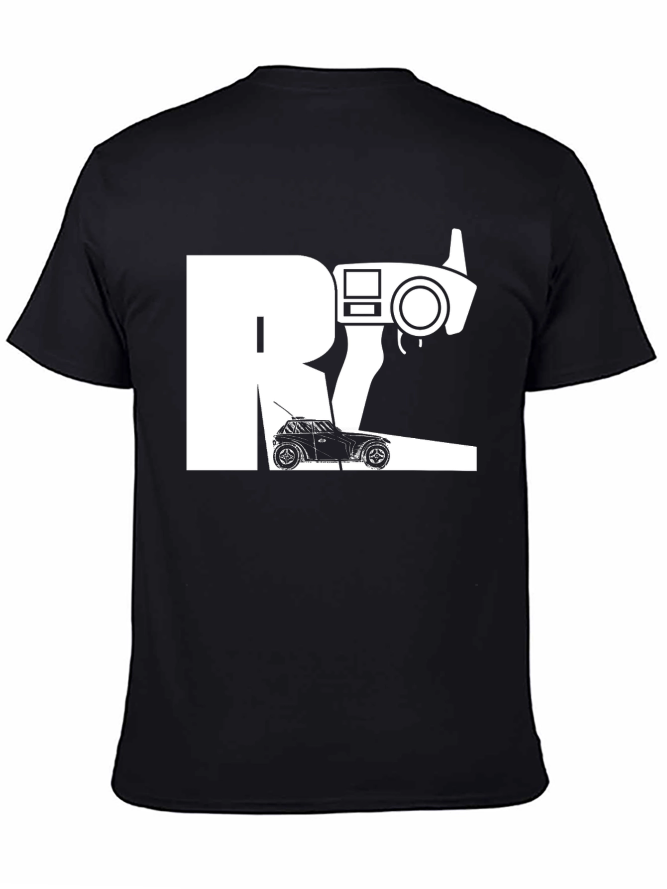 Show off your love for radio controlled cars with this stylish graphic tee. The shirt features a bold design incorporating an RC car, a classic RC controller, and a stylized letter, all in a clean, white print against a black background. Made from a comfortable-looking material, this tee is perfect for casual wear, car meets, or simply expressing your hobby. Durable construction promises long lasting wear, wash after wash. Ideal for RC enthusiasts and car lovers alike. Makes a great gift! Grab yours today!