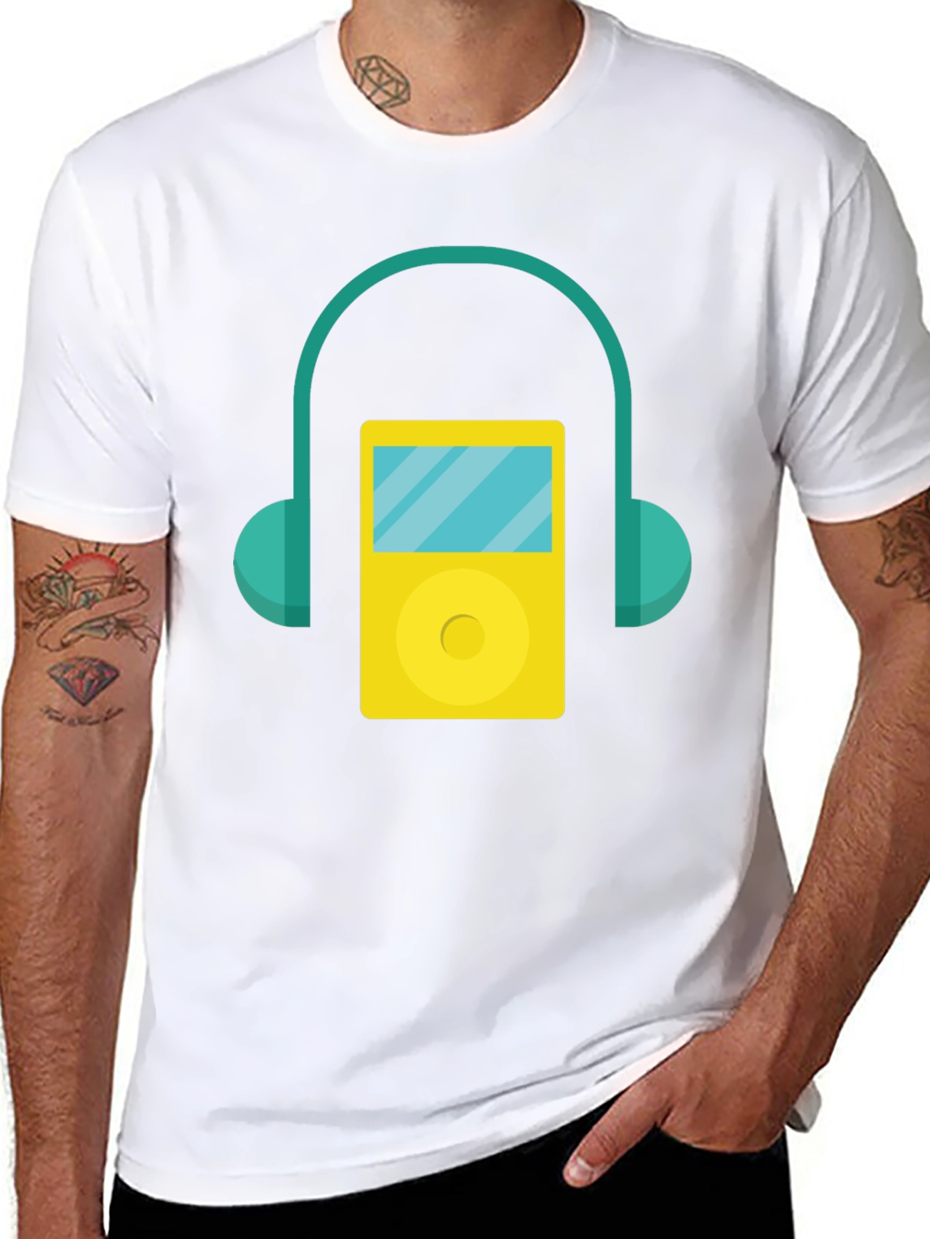 Step back in time with this stylish black cotton t-shirt featuring a vibrant retro music player graphic. The design showcases a yellow music player with a turquoise screen and matching headphones, instantly adding a touch of nostalgia to your wardrobe. Made from soft, breathable cotton, this tee offers both comfort and style. Perfect for music lovers, vintage enthusiasts, or anyone looking to add a pop of color to their casual look. Pair it with jeans, shorts, or a skirt for a versatile and eye-catching outfit. Makes a great gift! Stand out from the crowd and show off your love for classic tunes.