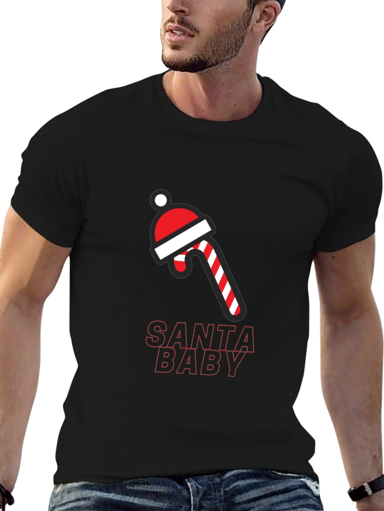 Spread some holiday cheer with this fun and festive black t-shirt. The design features a playful graphic of a candy cane wearing a Santa hat, accompanied by the words "Santa Baby" in a red outline font. Perfect for Christmas parties, casual gatherings, or simply showing off your holiday spirit, this tee is sure to be a conversation starter. Made from a comfortable and breathable fabric, it offers a great fit and feel. A stylish and unique way to celebrate the season.
