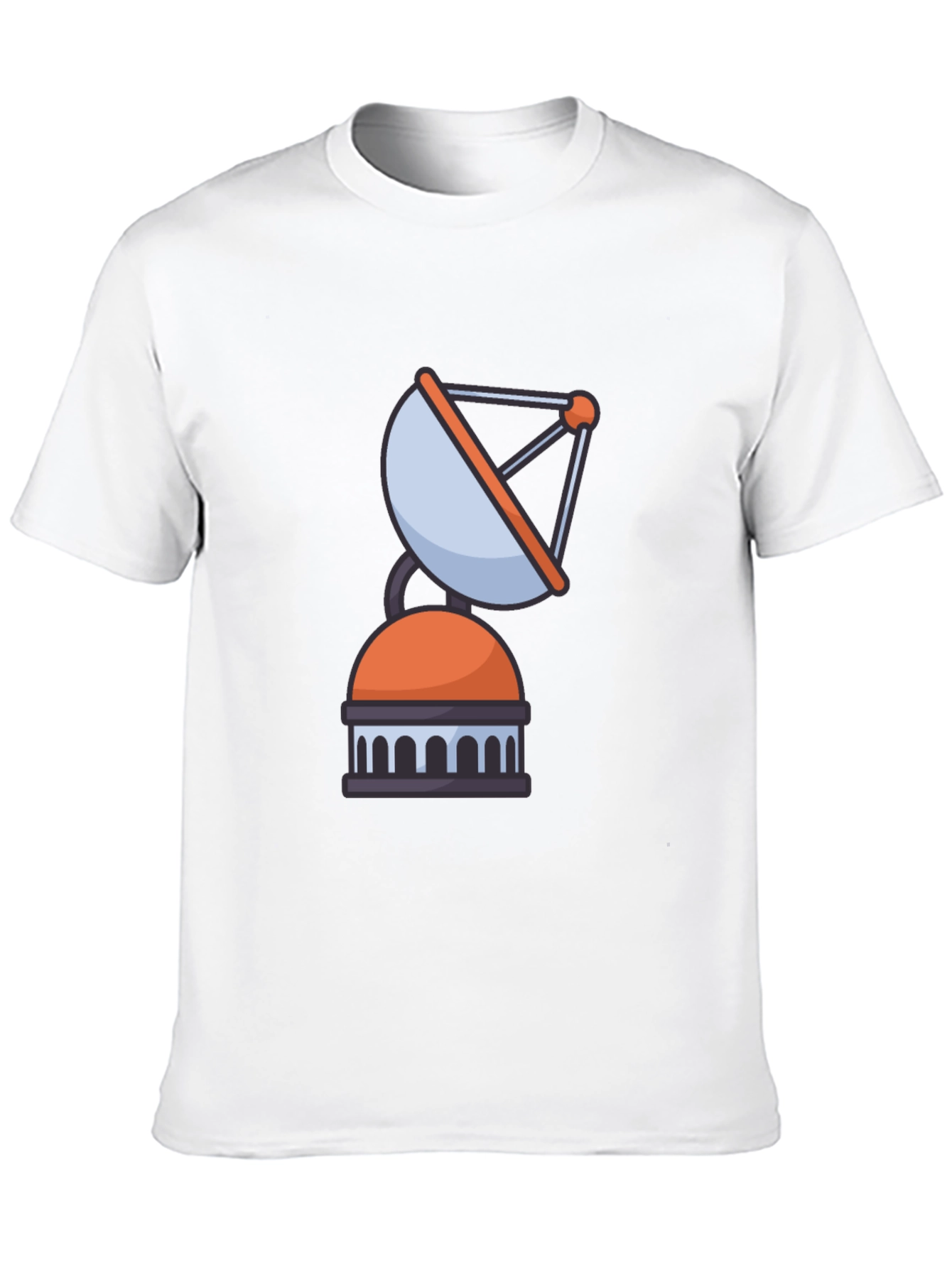 Elevate your casual wardrobe with this eye-catching black t-shirt. This unique tee features a vibrant, cartoon-style graphic of a satellite dish and building, adding a touch of tech-inspired flair to your everyday look. Made from soft, breathable cotton, it offers all-day comfort and a relaxed fit. Perfect for tech enthusiasts, students, or anyone who wants to make a statement, this t-shirt is ideal for casual outings, lounging at home, or expressing your personality. Pair it with jeans, shorts, or joggers for a versatile and stylish ensemble. Get yours today!