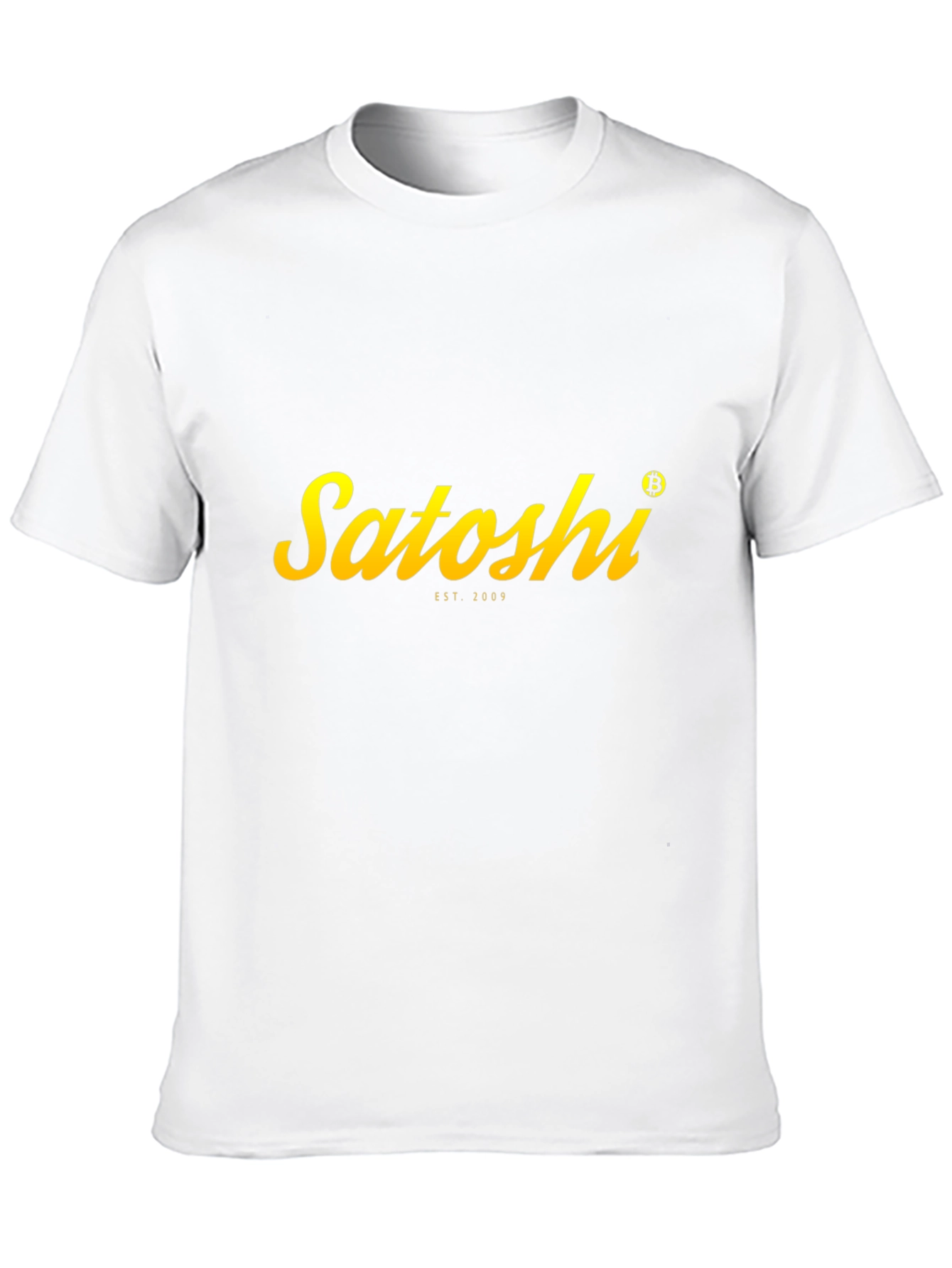Show your love for crypto with this stylish black t-shirt! Featuring the word "Satoshi" in a bold, eye-catching gold gradient font with a Bitcoin symbol. Below the name, "EST. 2009" commemorates the genesis of Bitcoin. Made from what appears to be a comfortable cotton blend, this tee is perfect for everyday wear or for making a statement at crypto meetups. The classic fit ensures a relaxed and flattering look. A must-have for any Bitcoin enthusiast or anyone interested in blockchain technology. Get yours today and spread the crypto revolution!