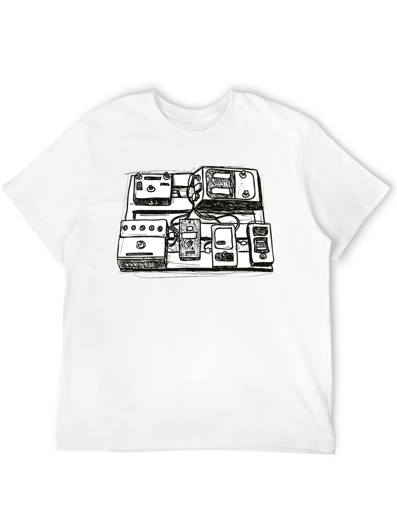 Showcase your love for music with this stylish black t-shirt featuring a unique sketch design of a pedal board. Made from soft, breathable fabric, this tee offers both comfort and style, perfect for casual wear or a band practice. The detailed graphic captures the essence of a musician's setup, making it an ideal conversation starter. Whether you're a guitar player, sound engineer, or music enthusiast, this t-shirt allows you to display your passion proudly. A great gift idea for the music lover in your life, wear it to concerts, jam sessions, or just around town.