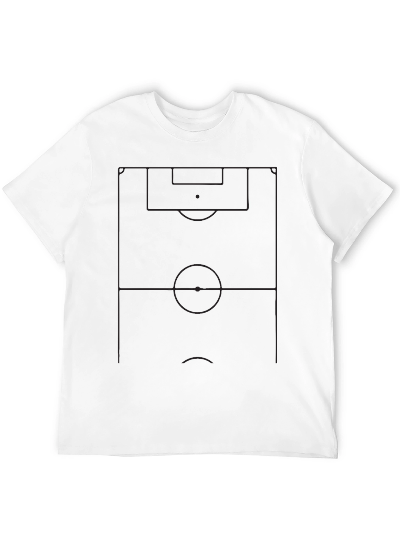 This black t-shirt features a unique and subtle design – a schematic outline of a soccer field. The minimalist graphic gives a nod to the beautiful game without being overly flashy. Made from a soft, comfortable fabric, this shirt is perfect for casual wear or for showing your love for soccer in a low-key way. Its versatile style makes it ideal for pairing with jeans, shorts, or even dressing it up with a blazer. A must-have for any soccer enthusiast's wardrobe, combining comfort and a passion for the sport. Great for everyday wear, casual outings, or relaxing at home.