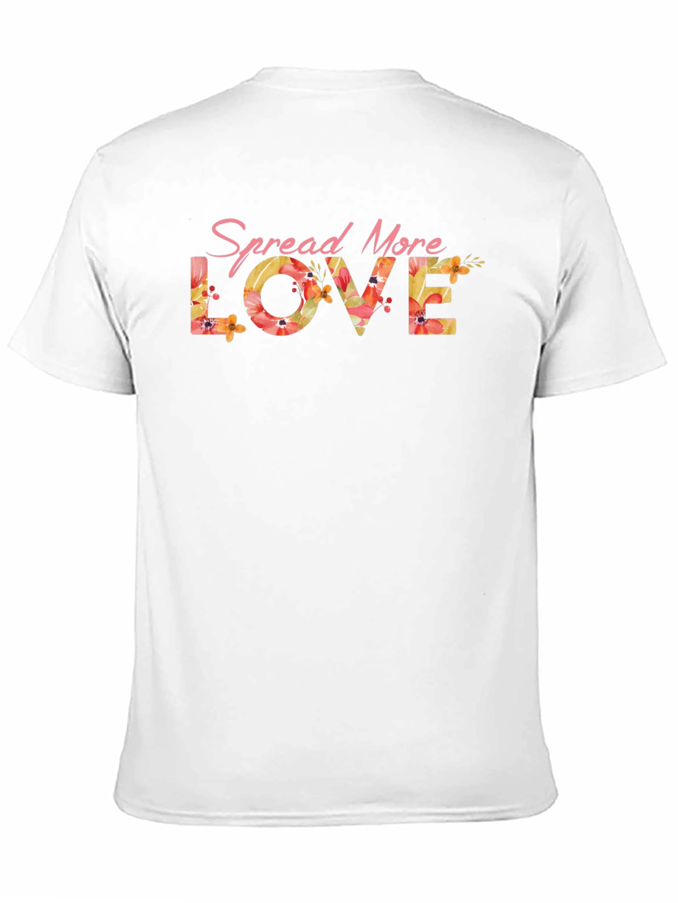 Showcase your love and positivity with this stylish black T-shirt. This comfy tee features the phrase "Spread More Love" in a beautiful floral-inspired design, perfect for adding a touch of charm to any outfit. Crafted from a soft and breathable fabric, this shirt ensures all-day comfort, whether you're running errands, lounging at home, or meeting friends. The vibrant floral pattern gives a stylish twist to the classic black tee, making it a versatile piece that pairs effortlessly with jeans, shorts, or leggings. Make a statement and spread the love wherever you go with this trendy graphic tee.