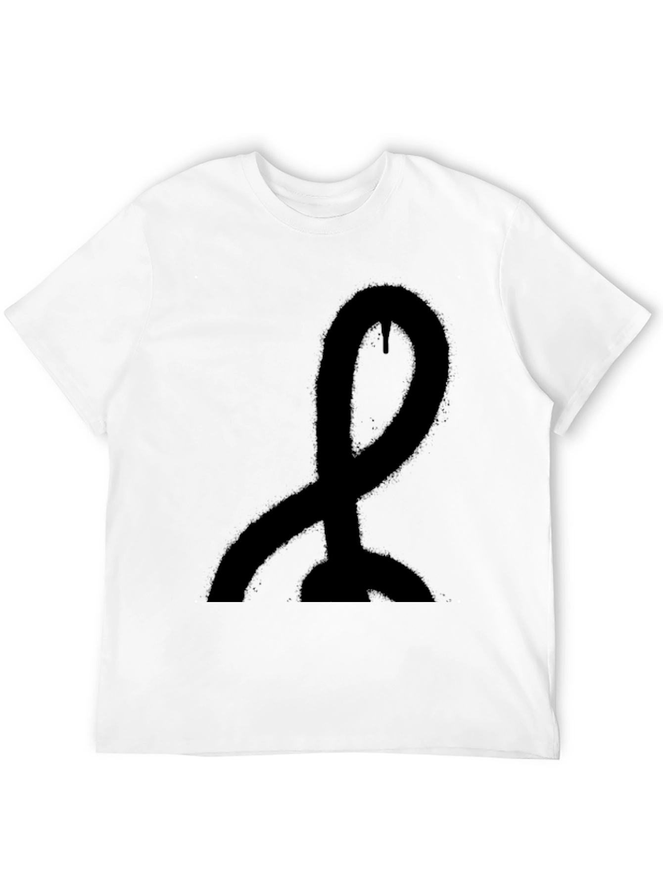 Make a bold statement with this striking black graphic tee. The shirt features a unique, abstract design spray-painted onto the center of the chest, creating a cool and edgy vibe. Made from soft, breathable cotton, this t-shirt is comfortable enough for all-day wear. The classic crew neck and short sleeves make it a versatile piece for any casual occasion. Pair it with jeans or shorts for a relaxed, street-style look. This tee is sure to turn heads and add a touch of artistic flair to your wardrobe.