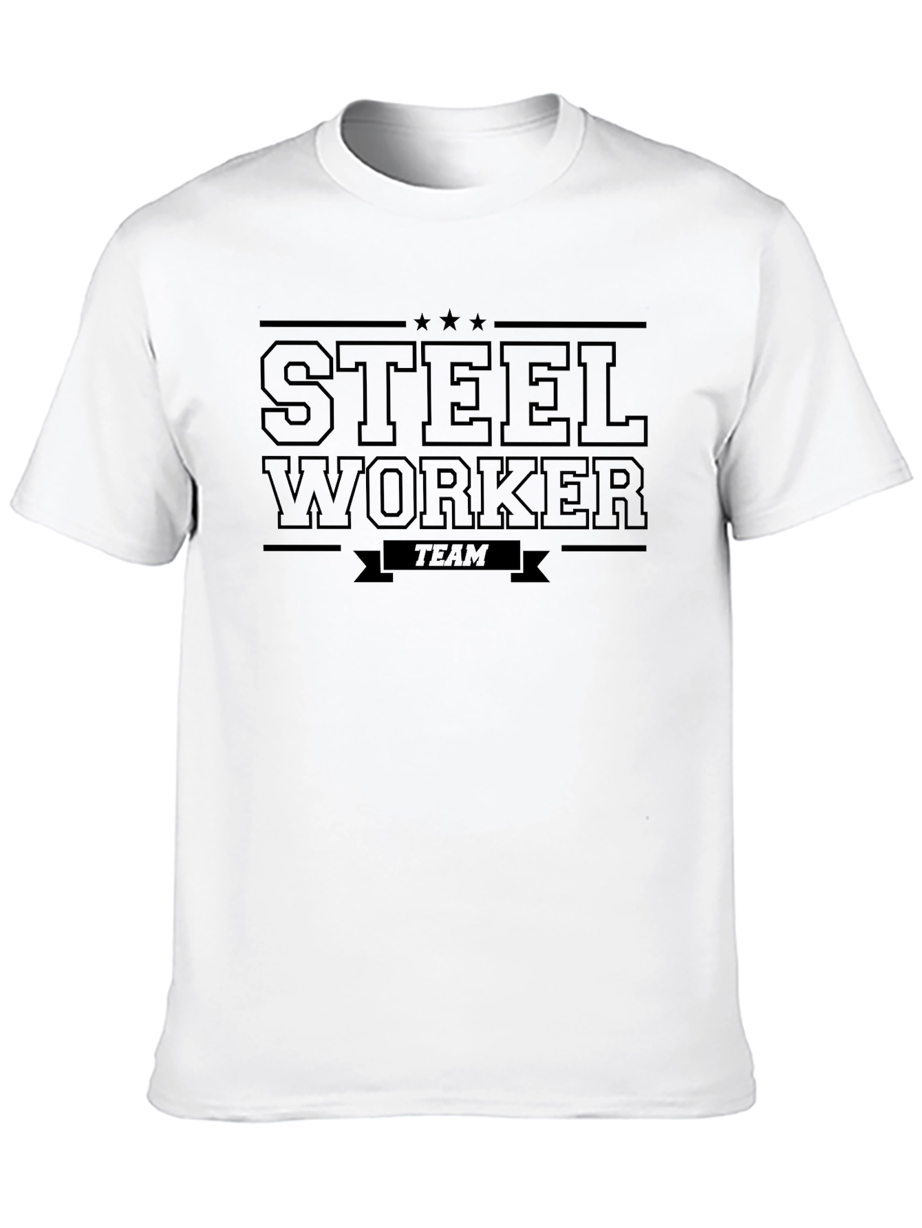 Show your support for the steel worker team with this classic black t-shirt. Made from comfortable, breathable fabric, this shirt features a bold "STEEL WORKER TEAM" design across the chest. The design includes three stars at the top and a banner underlining the word "TEAM", adding a touch of classic style. This shirt is perfect for everyday wear, showing team pride, or as a thoughtful gift for a steel worker in your life. Comfortable and durable, it's designed for lasting wear and easy care. Get yours today and represent your steel worker team in style!