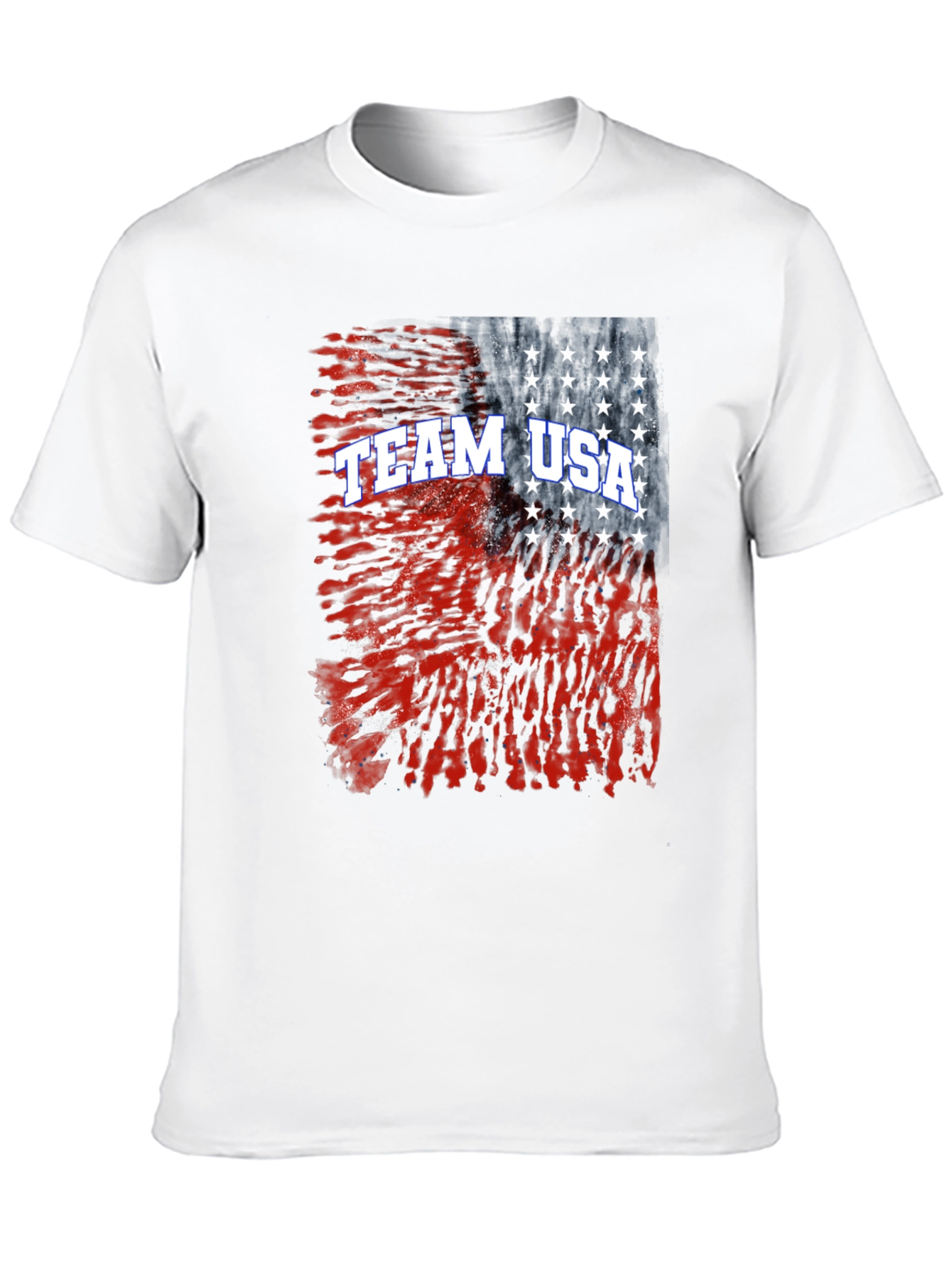 Show your support for Team USA with this stylish graphic t-shirt. The design features a distressed American flag graphic, blending red and blue with a star pattern. The bold 'TEAM USA' text makes it clear where your loyalty lies. Made from a soft, breathable fabric, this shirt is comfortable to wear all day long. Perfect for sporting events, patriotic holidays, or just everyday wear to show your American pride. A must-have addition to any fan's wardrobe. Makes a great gift for athletes and supporters.