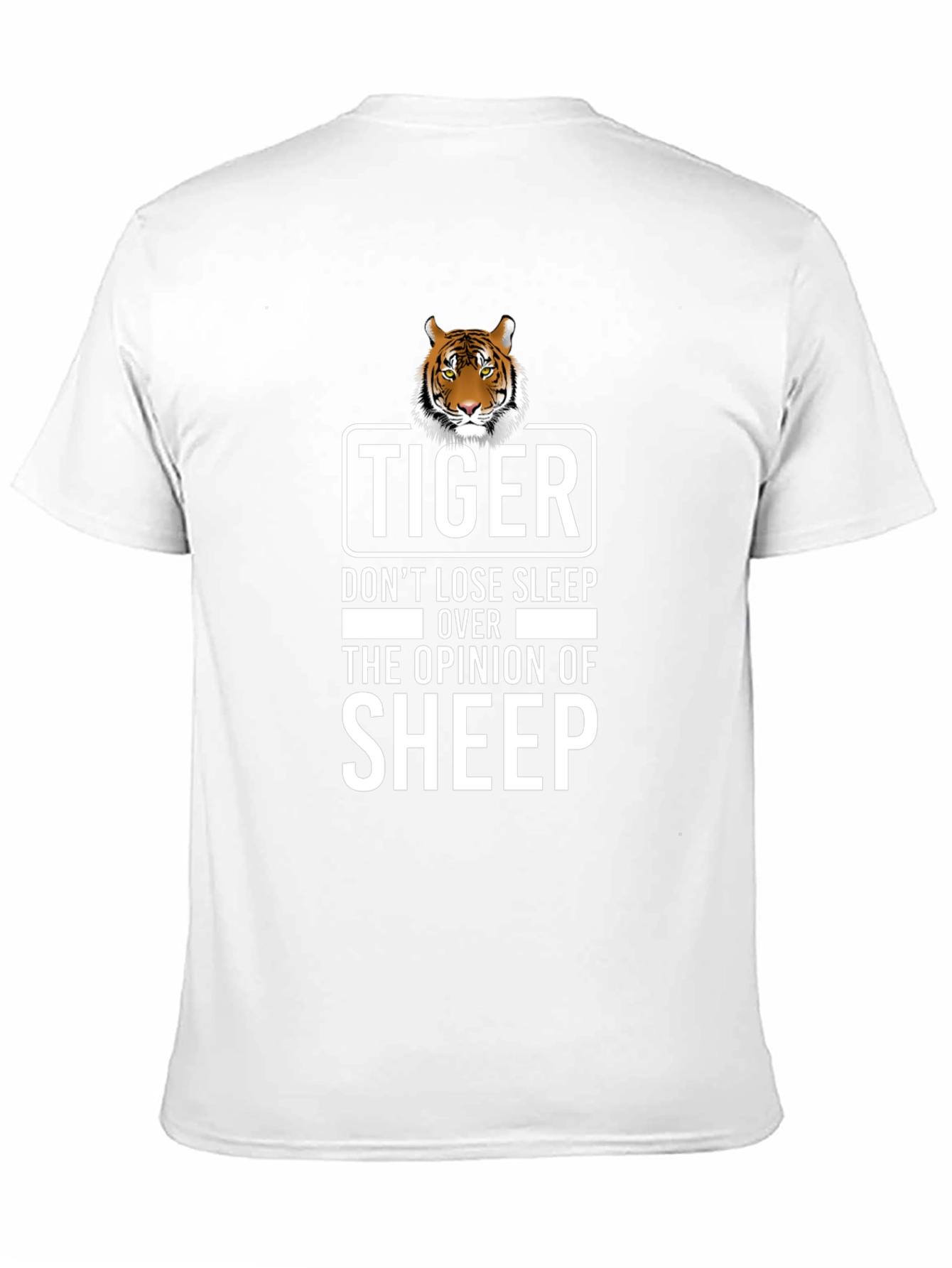 Showcase your confidence with this bold graphic tee! This black T-shirt features a striking design with a tiger illustration and the empowering message: "Tiger. Don't lose sleep over the opinion of sheep." Made from a comfortable-looking fabric, this tee is perfect for everyday wear. Wear it to express your unique personality and inspire others to stay true to themselves. Ideal for casual outings, social gatherings, or as a statement piece in your wardrobe. Make a statement and embrace your inner tiger!