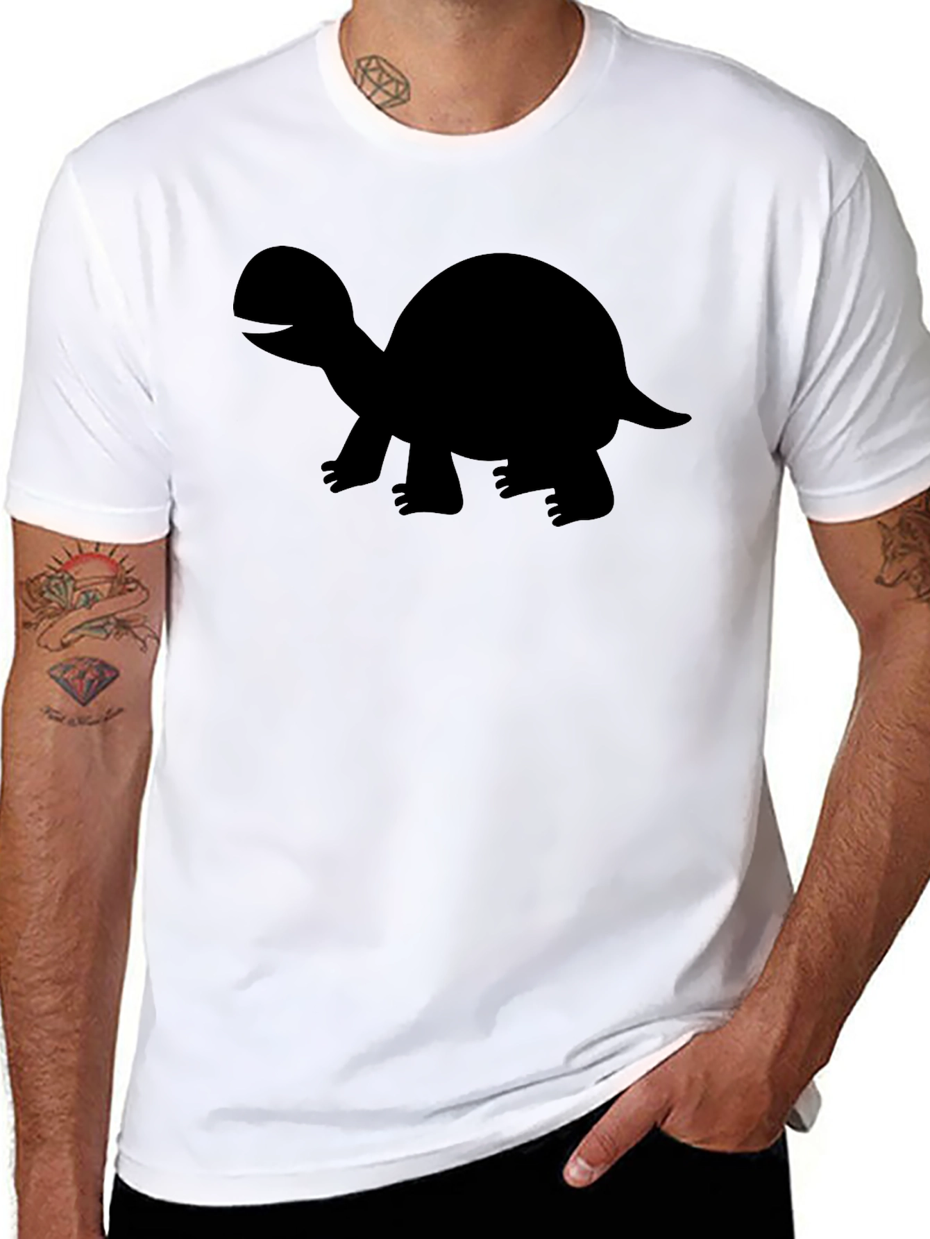 This classic black t-shirt features a bold silhouette graphic of a turtle, adding a touch of fun to your casual wardrobe. Crafted from a comfortable cotton blend, this tee offers a soft feel and a relaxed fit for everyday wear. The simple yet stylish design makes it versatile enough to pair with jeans, shorts, or even dress it up with a blazer. Perfect for animal lovers or anyone seeking a unique and understated graphic tee. Show off your love for nature with this eye-catching and comfortable turtle tee! A must-have for those who appreciate quality and style.
