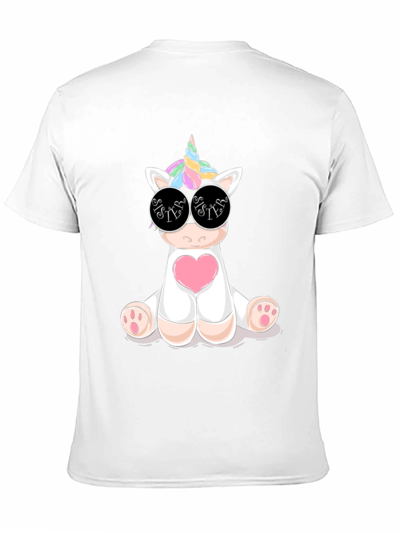 Express your unique style with this eye-catching black T-shirt. The standout feature is a charming unicorn graphic wearing sunglasses that say "Sister". The unicorn also features a heart on it's chest, and a rainbow mane. This casual shirt is perfect for everyday wear, special events, or as a fun gift for the unicorn lover in your life. Comfortable and stylish, this tee will add a playful touch to any outfit. The T-shirt is made of soft material and is comfortable to wear.