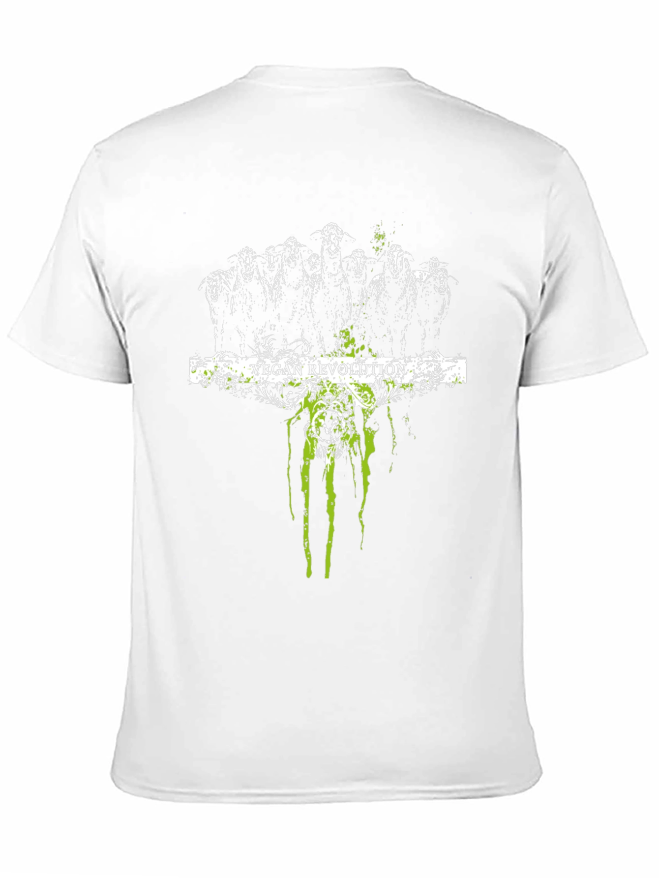 Embrace a compassionate lifestyle with this eye-catching Vegan Revolution T-shirt. Crafted from comfortable, breathable fabric, this black tee features a striking graphic print. The unique design showcases a collection of sheep above the text "VEGAN REVOLUTION" with a distressed-style paint drip effect in vibrant green. Ideal for everyday wear, protests, or casual outings, this tee expresses your values in style. Show the world your commitment to animal rights with this statement piece.