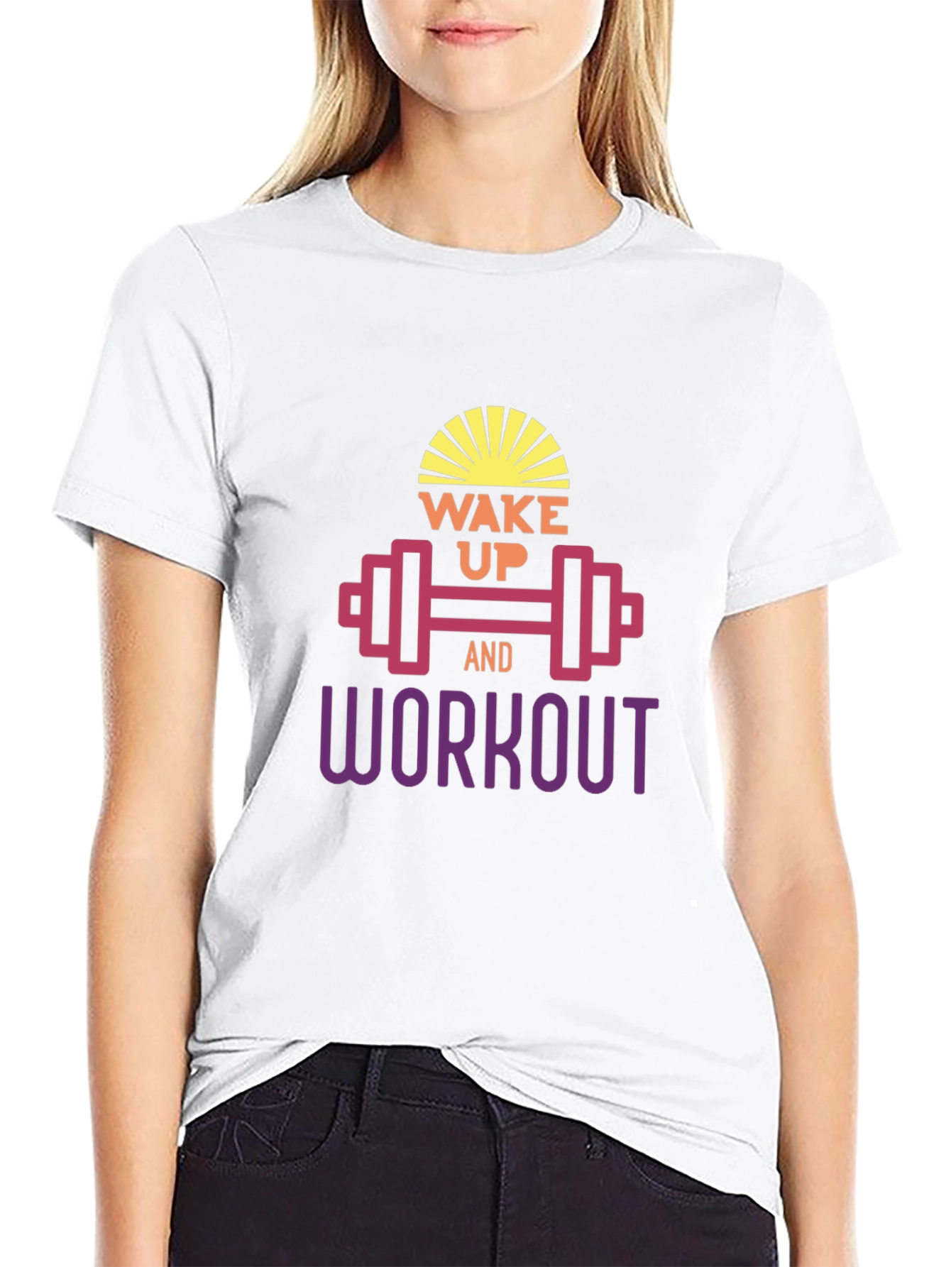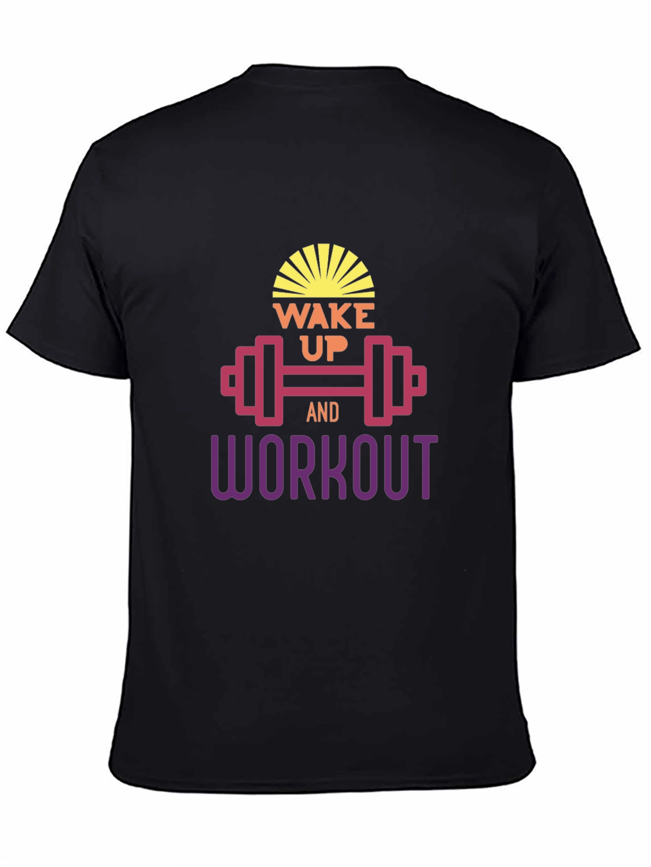 Start your day right with this motivating "Wake Up and Workout" black T-shirt. Featuring a vibrant and eye-catching graphic, this tee is designed to inspire your fitness routine. The design incorporates a sunrise motif with a dumbbell, rendered in shades of yellow, orange, and purple. Made from a comfortable, soft fabric, this shirt is perfect for your gym sessions, casual wear, or as a statement piece for fitness enthusiasts. Show off your dedication to a healthy lifestyle and make a bold statement with this unique and stylish T-shirt.