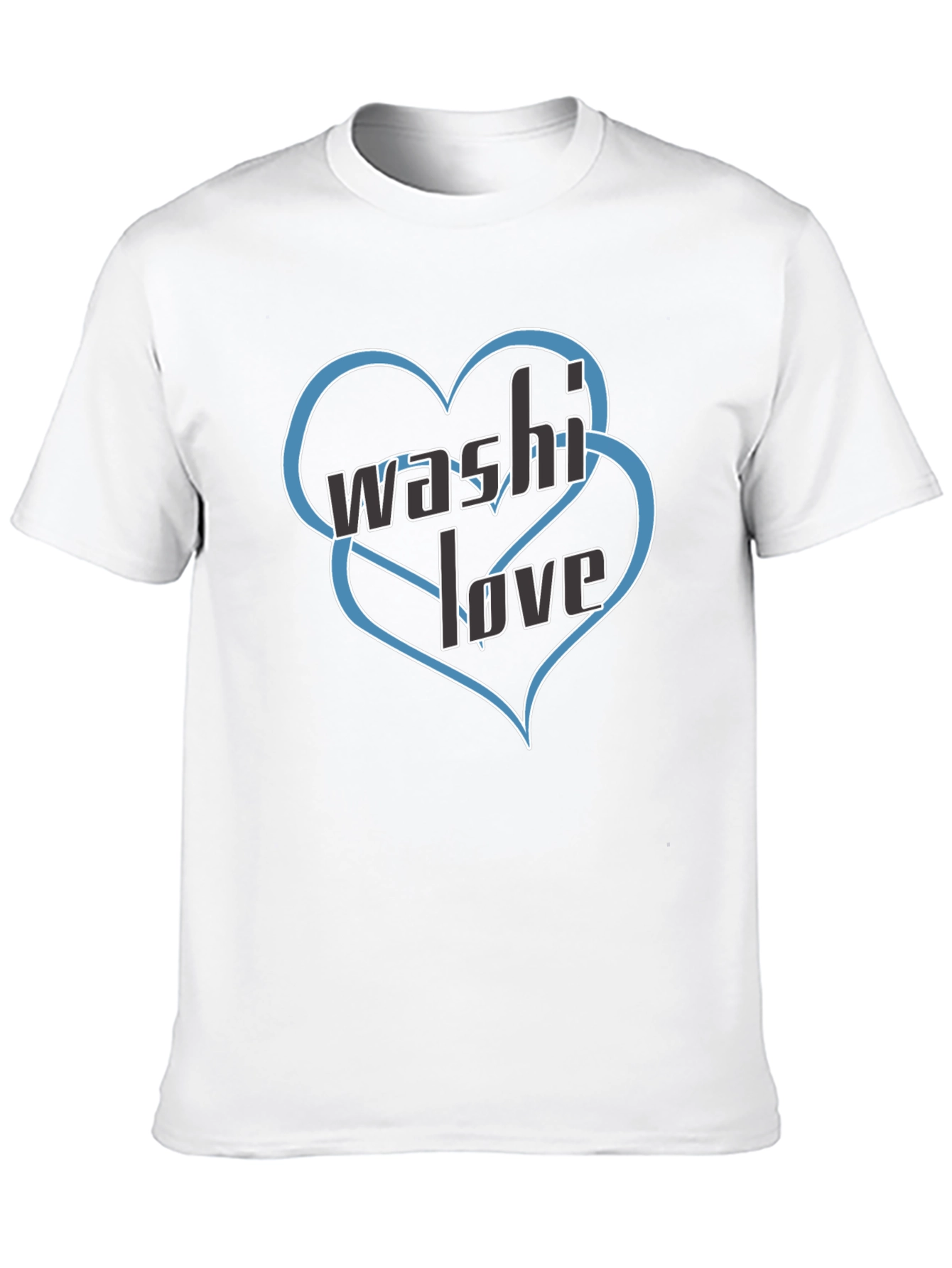 Show your love for washi tape with this stylish black t-shirt. This tee features the words "washi love" in a bold, modern font, intertwined within a light blue heart design. The classic black backdrop ensures the design pops, making it a perfect statement piece for casual wear. Made from a comfortable material, this shirt is ideal for everyday wear, crafting sessions, or as a gift for the washi tape enthusiast in your life. Embrace your passion with this trendy and comfortable t-shirt!
