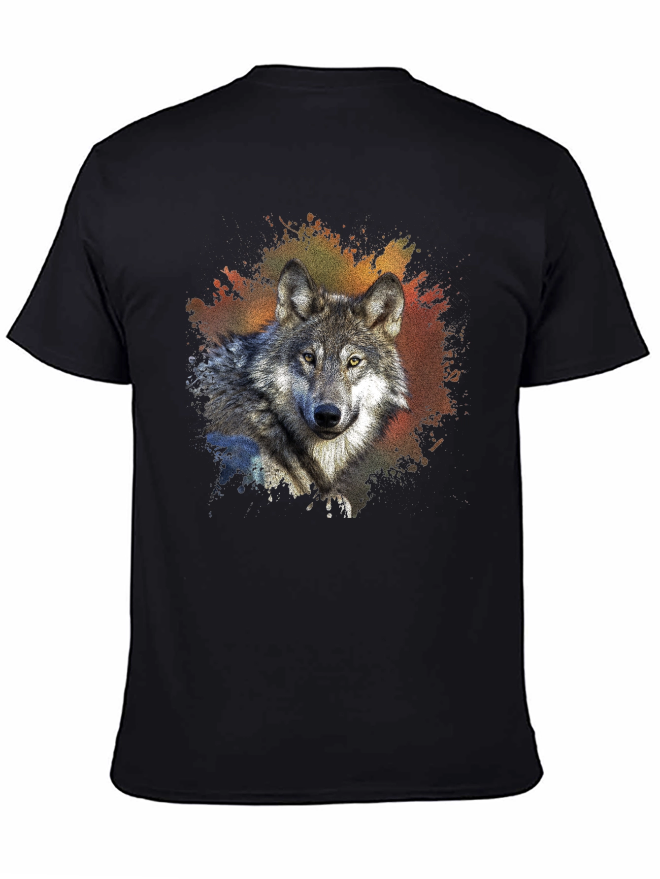 Unleash your inner wild with this striking black crew neck t-shirt. Featuring a captivating graphic of a wolf set against a vibrant, abstract splash of color, this tee is perfect for making a statement. The wolf design is highly detailed, giving a touch of realism to the abstract art. Made from a comfortable-looking fabric, this shirt is ideal for casual wear, concerts, or expressing your unique style. This tee is perfect for casual outings, or a unique gift for the wolf lover. Show off your love for wildlife and edgy fashion with this one-of-a-kind t-shirt!