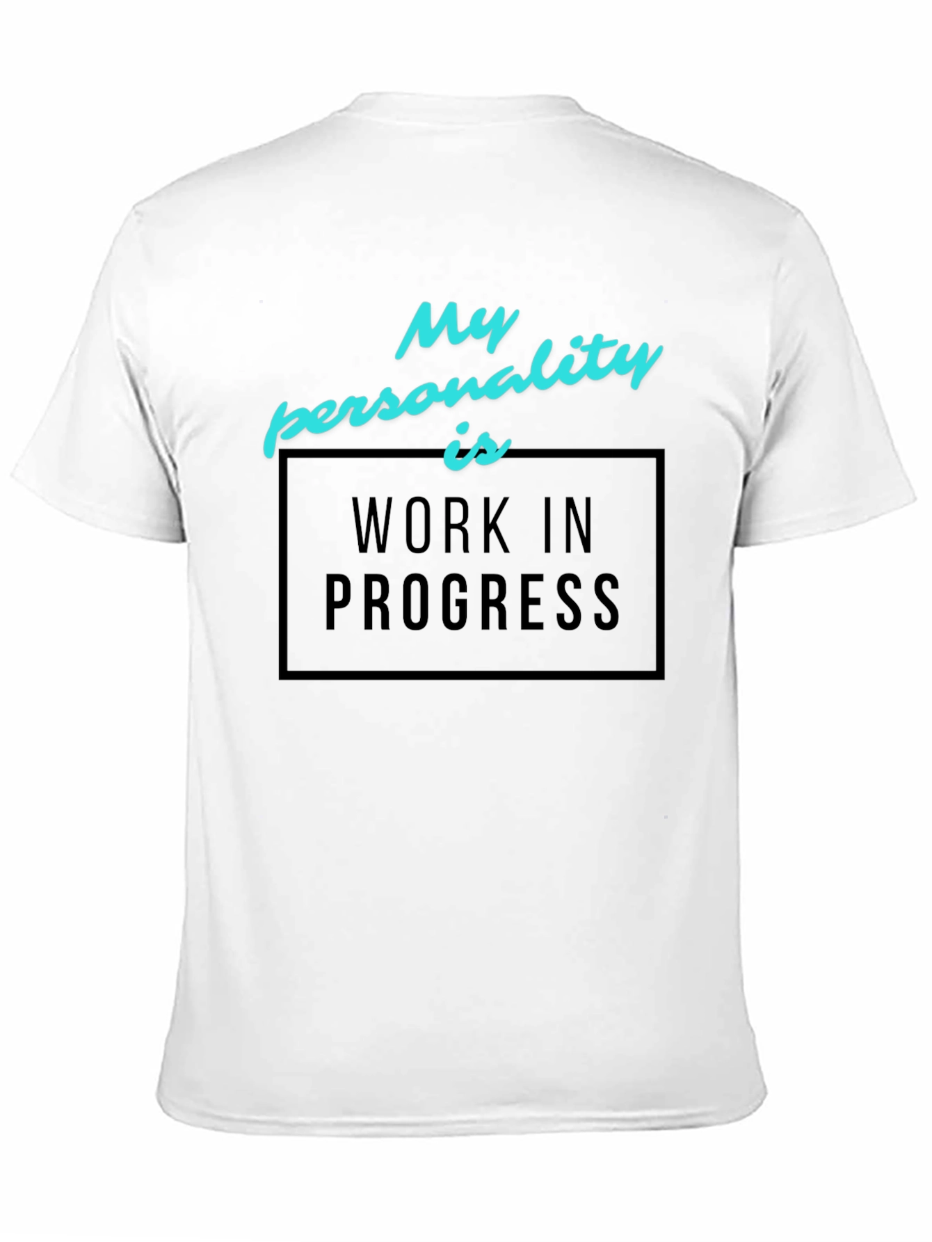 Showcase your evolving self with this stylish black t-shirt. Made from soft and comfortable cotton, it features a striking graphic print that reads "My personality is WORK IN PROGRESS" in a cool, modern font. The bold text is framed by a clean box, adding a contemporary touch. This tee is perfect for everyday wear, casual outings, or making a statement about self-improvement. Comfortable fit for all-day wear, this tee is a conversation starter and a stylish addition to any wardrobe. Get yours and let the world know you're always growing!