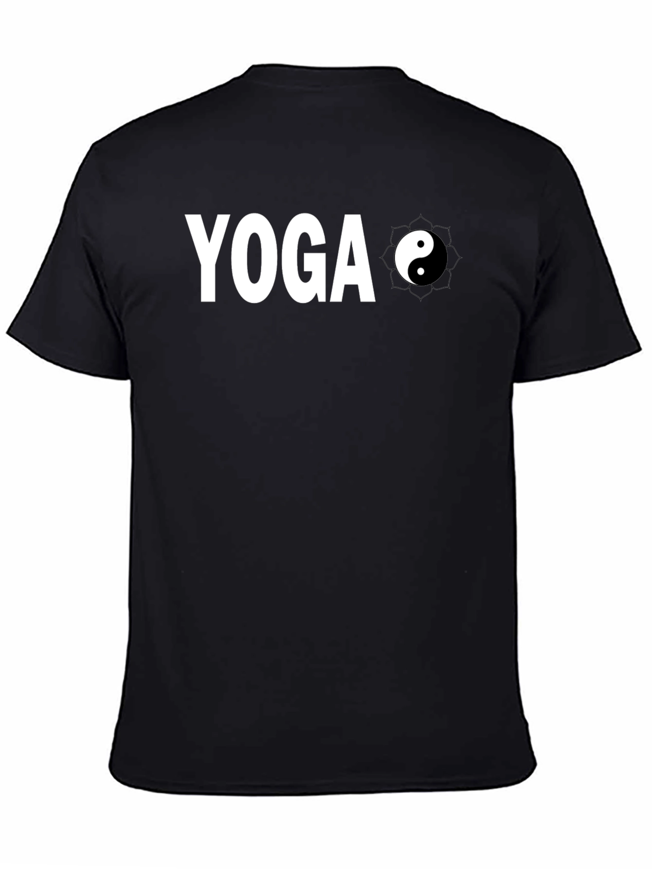 Embrace your inner peace with this stylish black t-shirt. Made from soft, comfortable fabric, this tee features the word "YOGA" in bold white letters, complemented by a yin and yang symbol. The minimalist design makes it versatile for everyday wear, workouts, or meditation sessions. Show off your love for yoga and balance with this eye-catching piece. Perfect for yogis, fitness enthusiasts, or anyone seeking a relaxed and mindful vibe. This tee is more than just clothing; it's a statement of serenity and well-being. Get yours today and spread the positive energy!